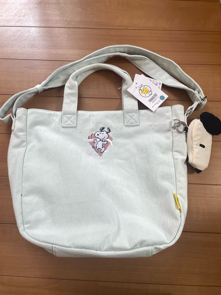 スヌーピー75周年限定モデルのハンドバッグ、長さ調整可能なショルダー紐が付いた2wayバッグです。