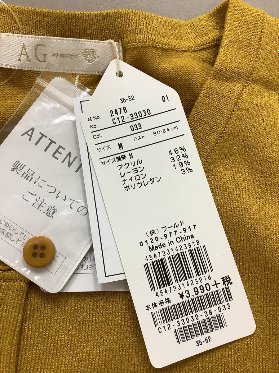 AG by アクアガール (aquagirl) タグ付き未使用 マスタード色カーディガン 【表示サイズ】 M 【平置き実寸】 脇下身幅 42cmほど 着丈 56cmほど 肩幅 34cmほど そで丈 56cmほど 【季節感】春秋向け 【状態その他】 未使用 ・ポケットはありません ・ストレッチ性のある生地です ・肩パット無し 当店管理番号:10^140428 |