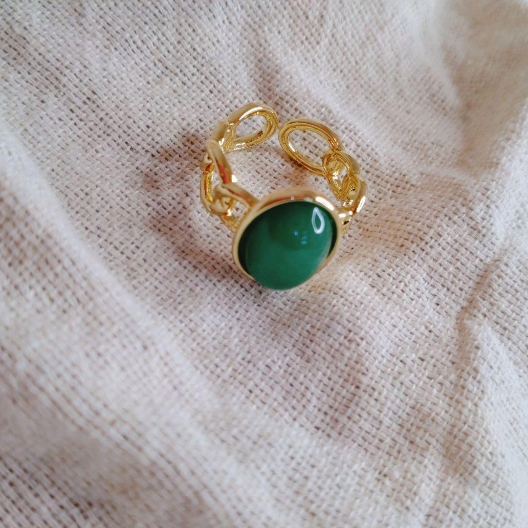 シックなグリーンストーンがとっても素敵なリングです!