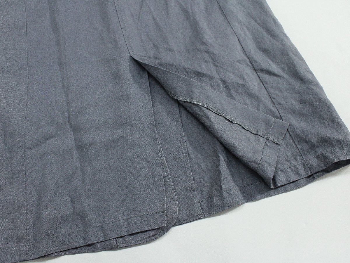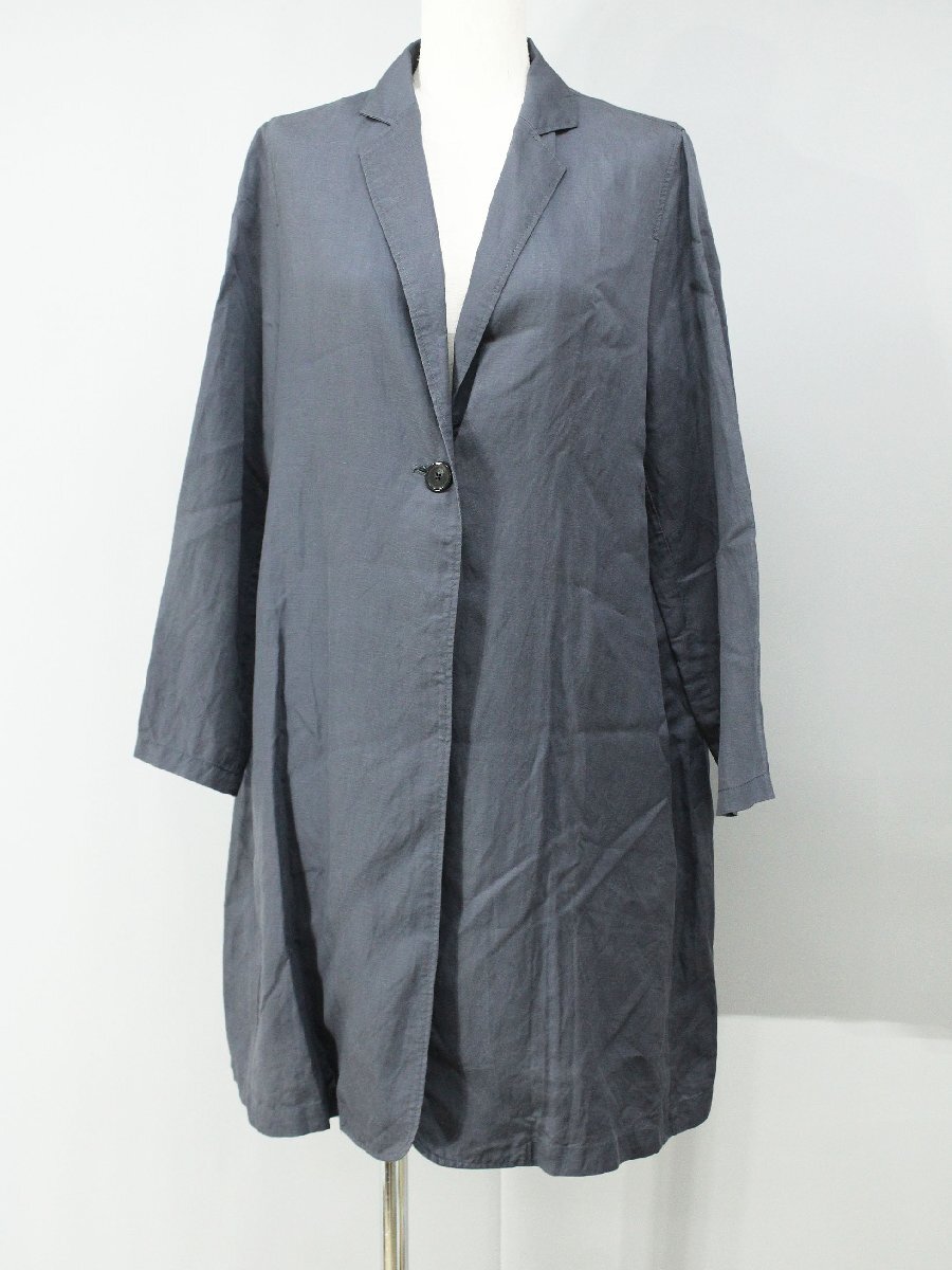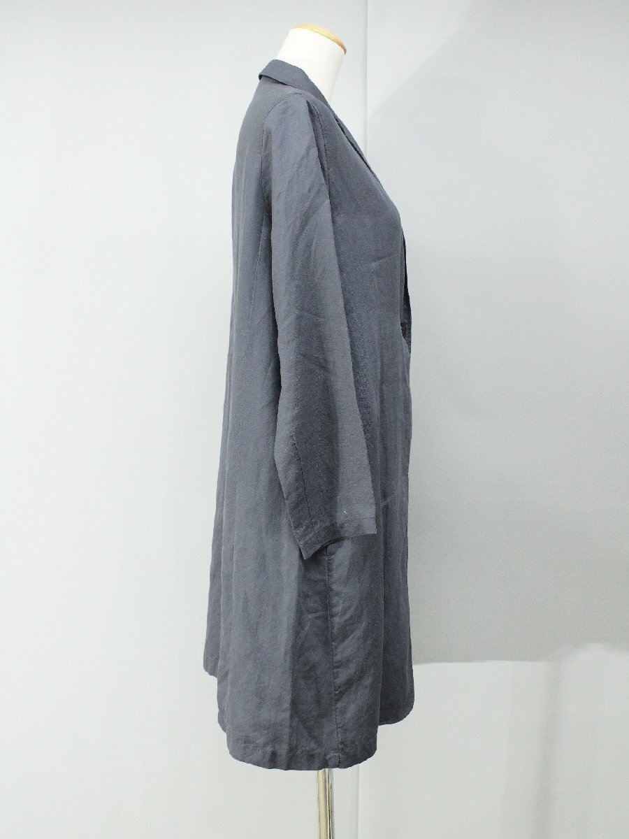 美品 MidiUmi/ミディウミ リネンVネック襟付き長袖ロングジャケット 濃灰 rl088