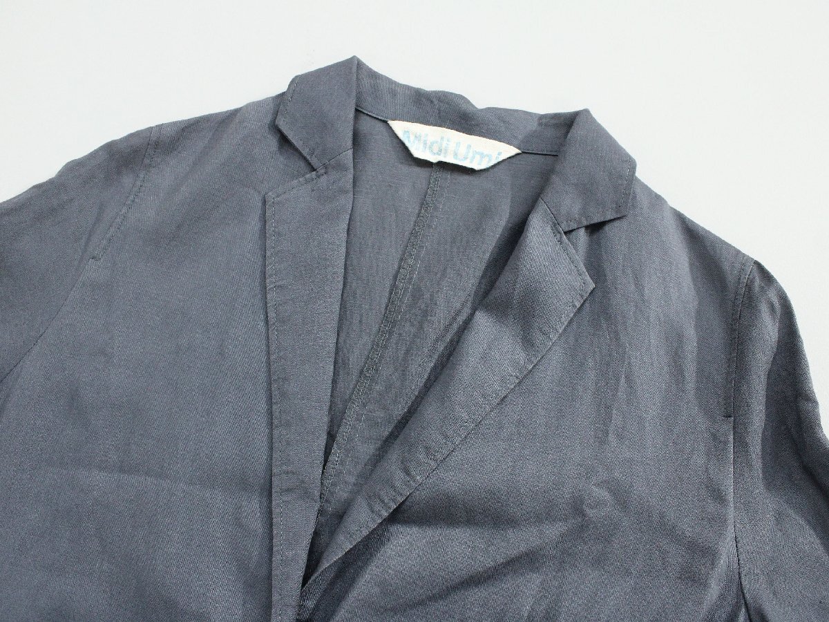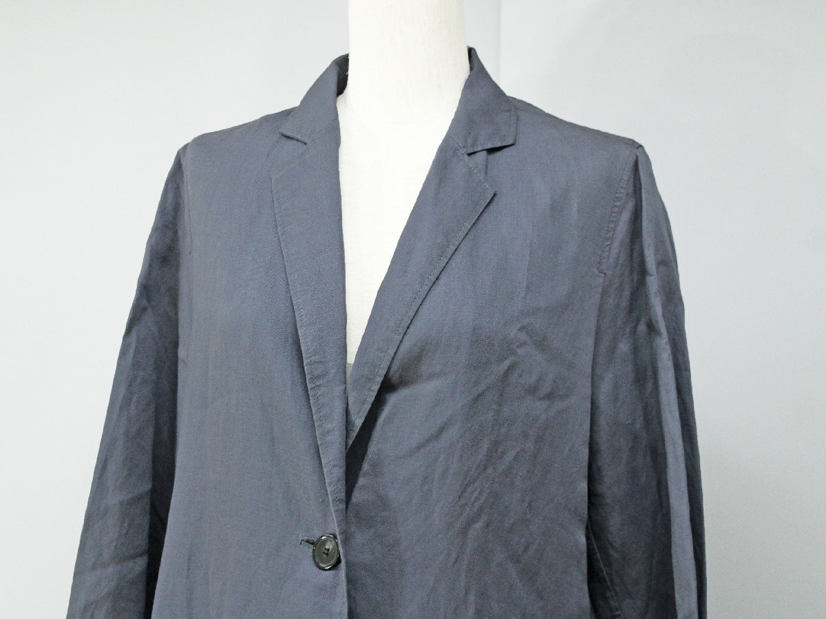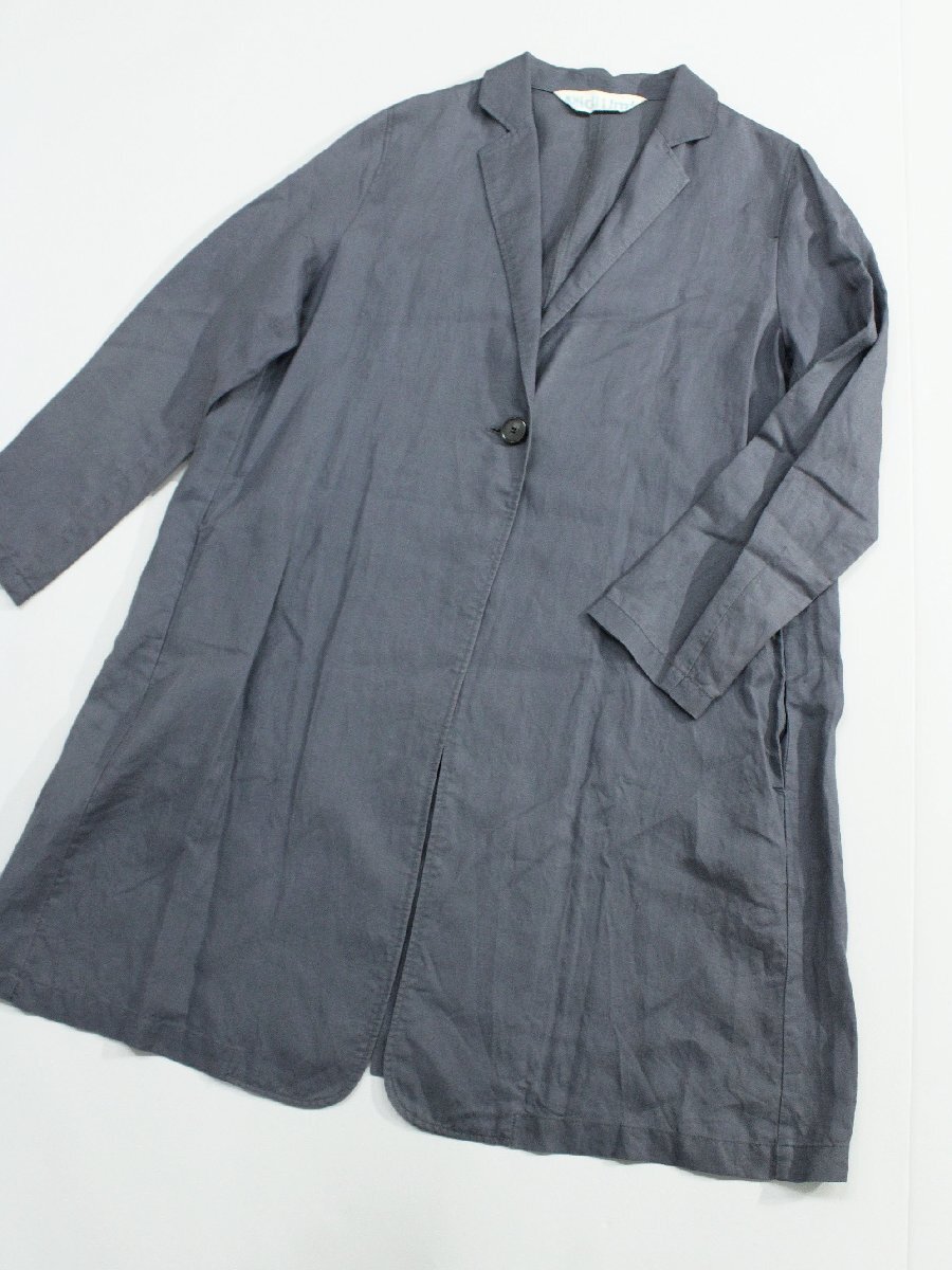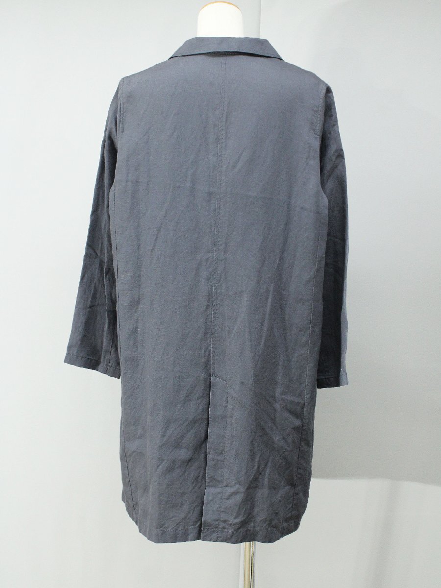 美品 MidiUmi/ミディウミ リネンVネック襟付き長袖ロングジャケット 濃灰 rl088