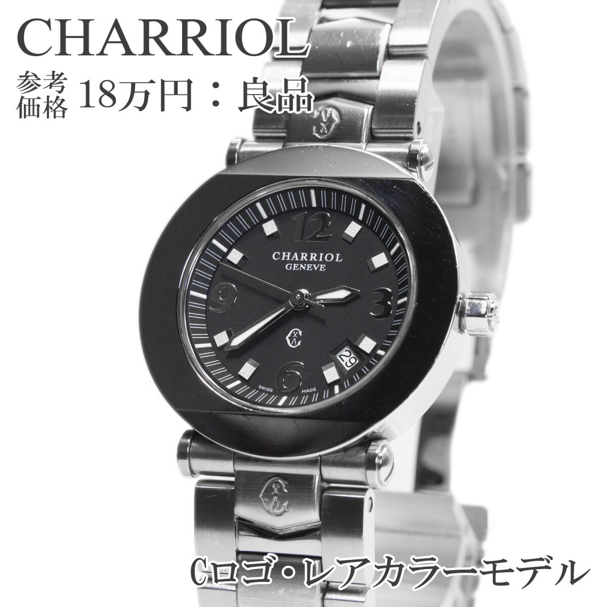 送料無料 シャリオール 腕時計 レディース コロンブス 黒 ブラック Cロゴ マーク シンプル ブランド 珍しい レアカラー スイス製 綺麗 X206