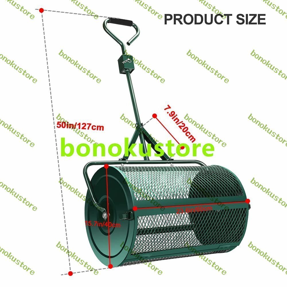 コンポストスプレッダー ピートモススプレッダー、芝生&ガーデンスプレッダー、24インチ高耐久メタルメッシュローラープッシュ/トウスプレッダー - コンポスト、芝生と庭のケア肥料スプレッダーローラー用