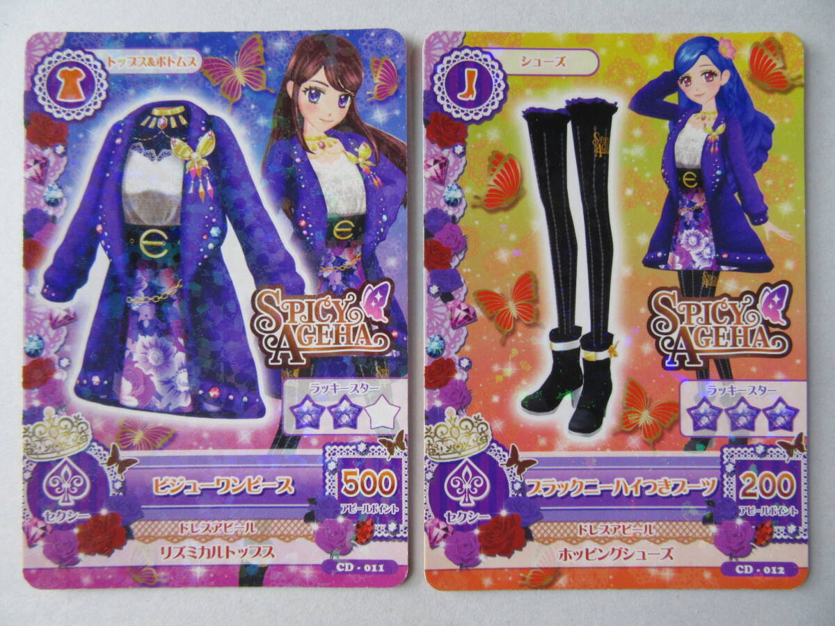 ★アイカツ カード CD ビジューワンピース ブラックニーハイつきブーツ コーデ 2枚 セット 紫吹蘭 風沢そら プロモ★
