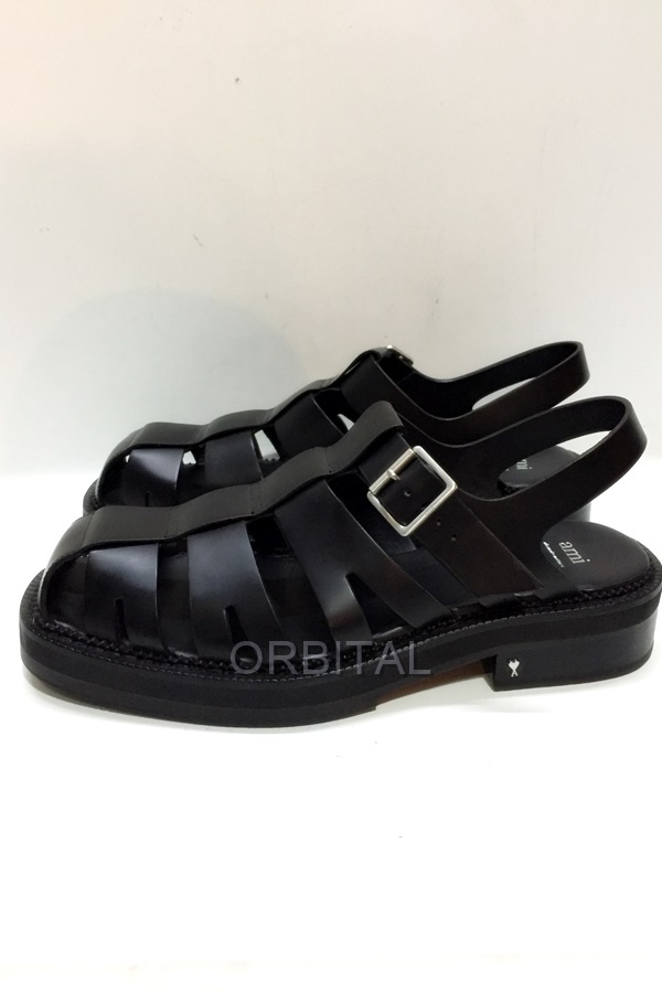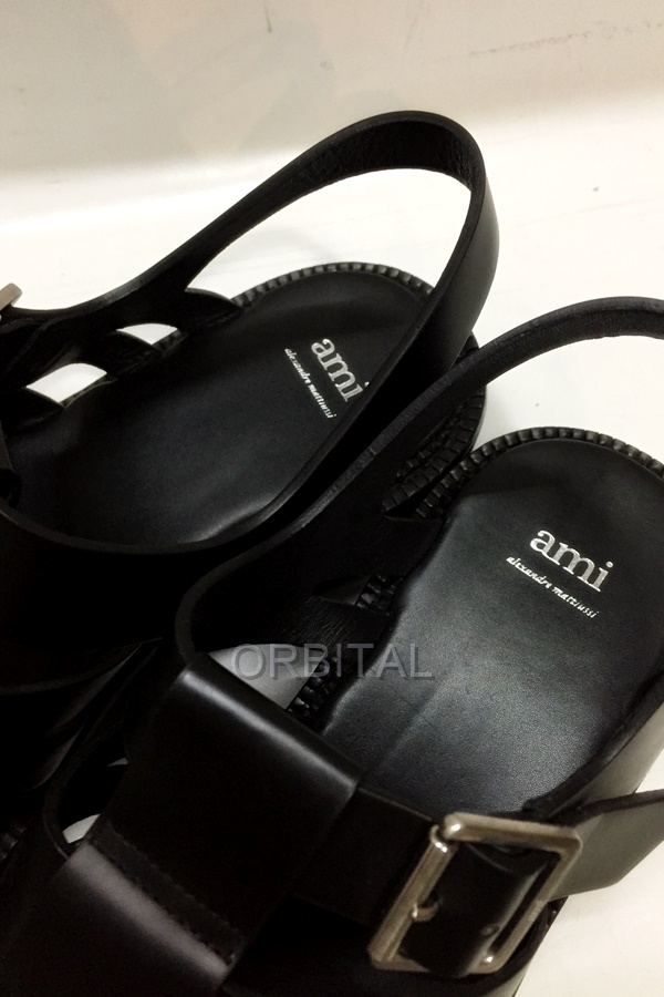 AMI PARIS アミパリス レザー グルカサンダル ストラップ サンダル シューズ ブラック サイズ44