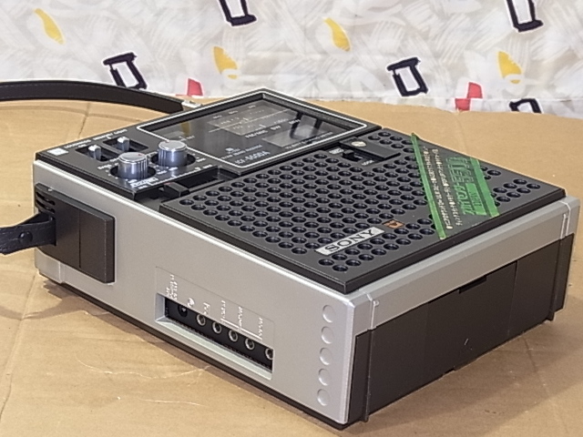 | 商品説明 | ■□■□■□■□■□■□■□■□■□■□■□■□■□■□ らじお屋どっとこむをご覧頂き、ありがとうございます! 今後は【らじお屋どっとこむ】 としても活動していきますので、新しく作ったHPもご覧いただけますと幸いです! ◇ご覧頂きありがとうございます。必ず注意事項を確認の上、入札をお願い致します。 ◆ご入札頂いた時点で商品にご納得して頂いたと判断させて頂きます。 ※ご落札後のトラブル防止の為、ページ下部の『注意事項』を必ずご確認ください。 ご落札後のクレーム、返品はお受けできかねます。 ■□■□■□■□■□■□■□■□■□■□■□■□■□■□ 譲り受けましたお品を現状引き渡しにて出品いたします。 使用機会がなくなったので、ご利用いただける方にお譲りしたいと思います。 今回ご紹介するのは、SONY【ICF-5500(A)】時代を超えた「男の『超』一流品」なのである 、分解・整備・調整済、クリーニング済みです。 ●商品説明 ・ FM/AM/SW 各バンドで受信を確認しています。 ・ FM/AMではノイズなくクリアな受信状態です。 ・チューニングメーターは稼動し、確かなチューニングが可能です。 ・「チューニングノブ」の動きはスムーズです、バックラッシュはありません。 ・音量ボリュームにガリがありません。 ・トーンボリュームはガリなく良好です。 ・大型スピーカーで、柔らかで良好な音質です。 ・メーター照明も、点灯します。 ・タイマー・AFC・ラウドネス等作動OKです。 ・アンテナも全段伸縮し、ポップアップも良好です。 ・電池ボックスには、錆などはありません。 ・ACアダプター・乾電池ともに作動を確認出来ています。 ・乾電池が付属しています。ACアダプターは付属していません。 ・POPラベルは希少なオリジナルです。 ■ダイアライトが暗いため、高照度LEDに交換してあります。暗くても操作しやすくなっています。 ・ 経年のキズ、サビありますが、大きなダメージなく比較的綺麗なラジオです。 ・ガリなく雑音もありません。 ■延べ480時間以上動作で安定動作を確認済み。 ■付属品は写真の通りです。POPラベルは希少なオリジナルです。 BCLマニア向けコレクション品。 マニアの方用。 ●特徴 ☆発売当時のメーカー商品説明☆ メーカー: SONY 型番: 【ICF-5500(A)】 商品名 ICF-5500A 1973年(昭和48年)11月発売 新品参考価格:18,800 円 ラジオ 程度良好 ■商品説明 機能的にはこれまでの「11シリーズ」のICF-1100Dにタイマーをつけただけ・・・といった感じで、 特筆すべき点はないが、5500のすごさはそのデザインで、 これまでのイメージとはまったく違う斬新さが、 この5500にはあります。 この魅力あるデザインに少年達は惹かれ、BLCブームが始まったといっても過言ではありません。 この機種は衝撃を与えるとダイヤルフィルムがずれることがあるので、丁寧に扱う必要があります。 ただ、このダイヤルフィルムズレと、電池金具が錆びている以外は、 モノが古い割にはあまり壊れていることが多くないのが特徴です。 ICF-5500が登場してから1年半あまり経った昭和48年(1973年)11月、 ICF-5500はマイナーチェンジを受けてICF-5500Aに変わりました。機能的に大きく異なるのは、 日本短波放送(今の日経ラジオ)受信用クリスタルをオプションで背面に接続収納できるようになったこととそれに伴うクリスタル作動スイッチが上面パネルに加えられたこと。 同じスイッチでFM放送受信時にはホワイトノイズをカットするFMミュート機能(スケルチ機能)となること。内蔵の12cmフルレンジスピーカを、 当時のソニー最新技術を取り入れULMスピーカにしたことなどが挙げられると思います。外観は上面パネルにスイッチがひとつ増えたことくらいですが、 よく写真を見ればわかるように、ボディの黒色部分が微妙に灰色っぽくなっているのです。またTONEボリュームノブが銀色メッキ塗装になっていたりするなどの色の違いが見られます。 ■参考スペック 受信周波数 FM 76~90MHz MW 530~1605kHz SW 3.9~12MHz 受信感度 FM 1.26μV(SN 30dB) /50mW MW 17.8μV/m/50mW SW 1μV/50mW 出力 2.8W 電源 単2乾電池3本 またはACアダプター・AC-110(4.5V)使用 幅163×高さ204×奥行66(単位 mm) 重量 1.56kg(電池含む) ●心地よく使って頂けるよう、76MHz~95MHzが受信できるように改良しました。 周波数表示と実際の周波数にずれがありますが、問題ないレベルに収まっています。 【動作・受信状況】 ・ラジオFM/AM/SW 受信動作確認済み、音質良好です。 MW(中波=NHK第1、第2、TBS、文化放送など主要AM局 )、東京23区夕方の時間帯で、 札幌放送と鹿児島放送がきれいに受信できました。SW(短波放送)、FM(NHK,J-WAVE,FM-TOKYOなど主要FM局 )の受信を確認しました。 ※受信状態は受信場所や環境により異なります。 すぐご利用になれますので、安心してお求めください。 【修理調整内容】 1:分解・洗浄 本体は分解して洗浄後クリーナーで仕上げてあります。 基盤のクリーニング、ボリューム、バンド切り替えスイッチは、パターンの耐久性を考慮して外
