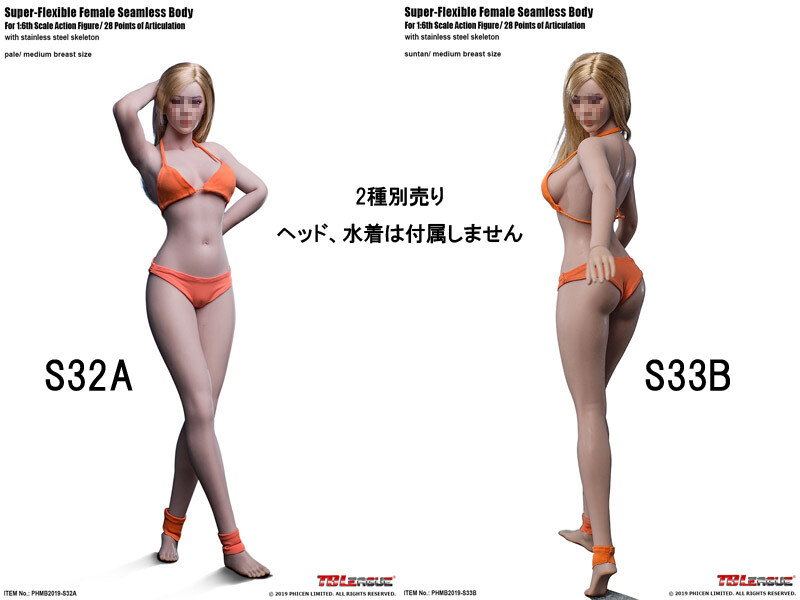 TBリーグ 1/6スケール シームレス女性ボディ (ヘッドなし) TBLeague Female Super Flexible Seamless Body PHMB2019-S32A (Pale)