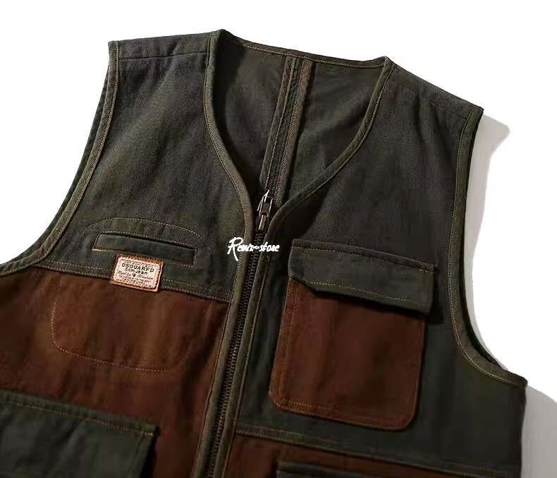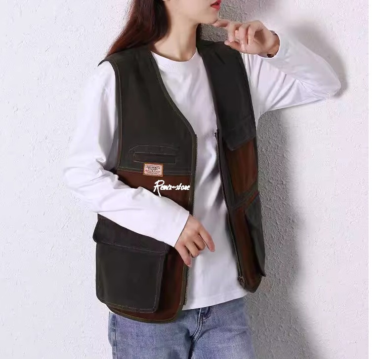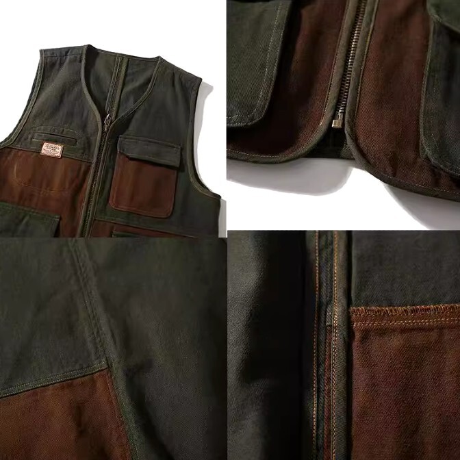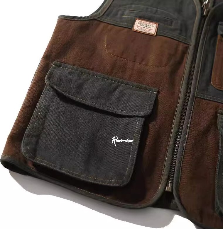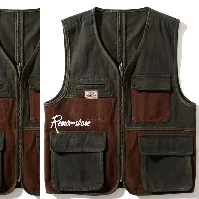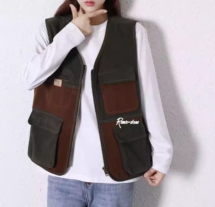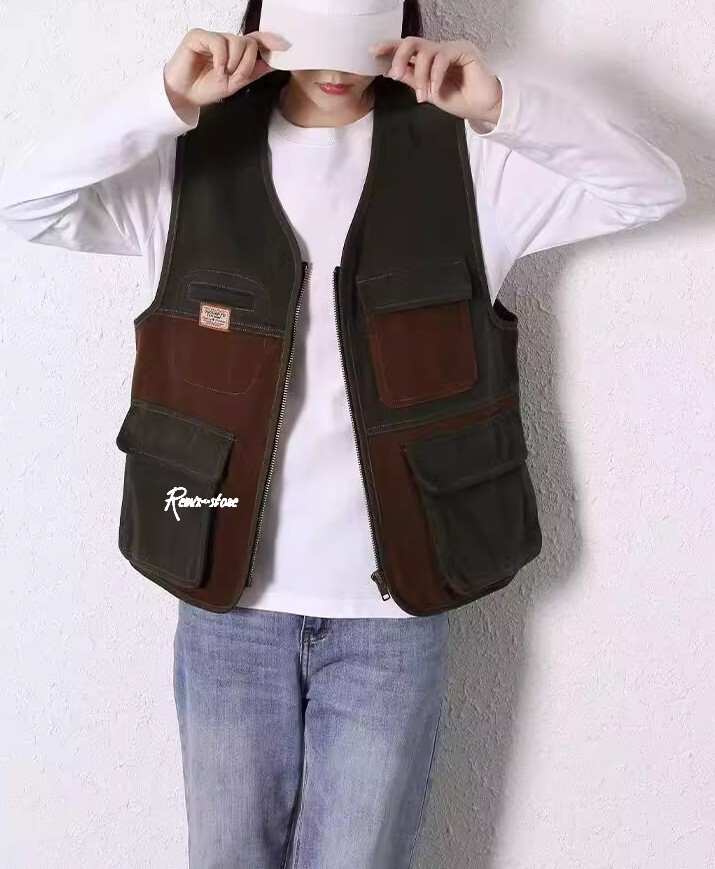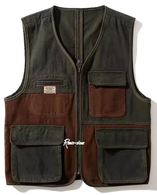 ★ヘヴィコットン ウォッシュ マルチポケット ワークウェア ジレ ベスト ユニセックス M~2XL アウトドア メンズ レディース★sw512