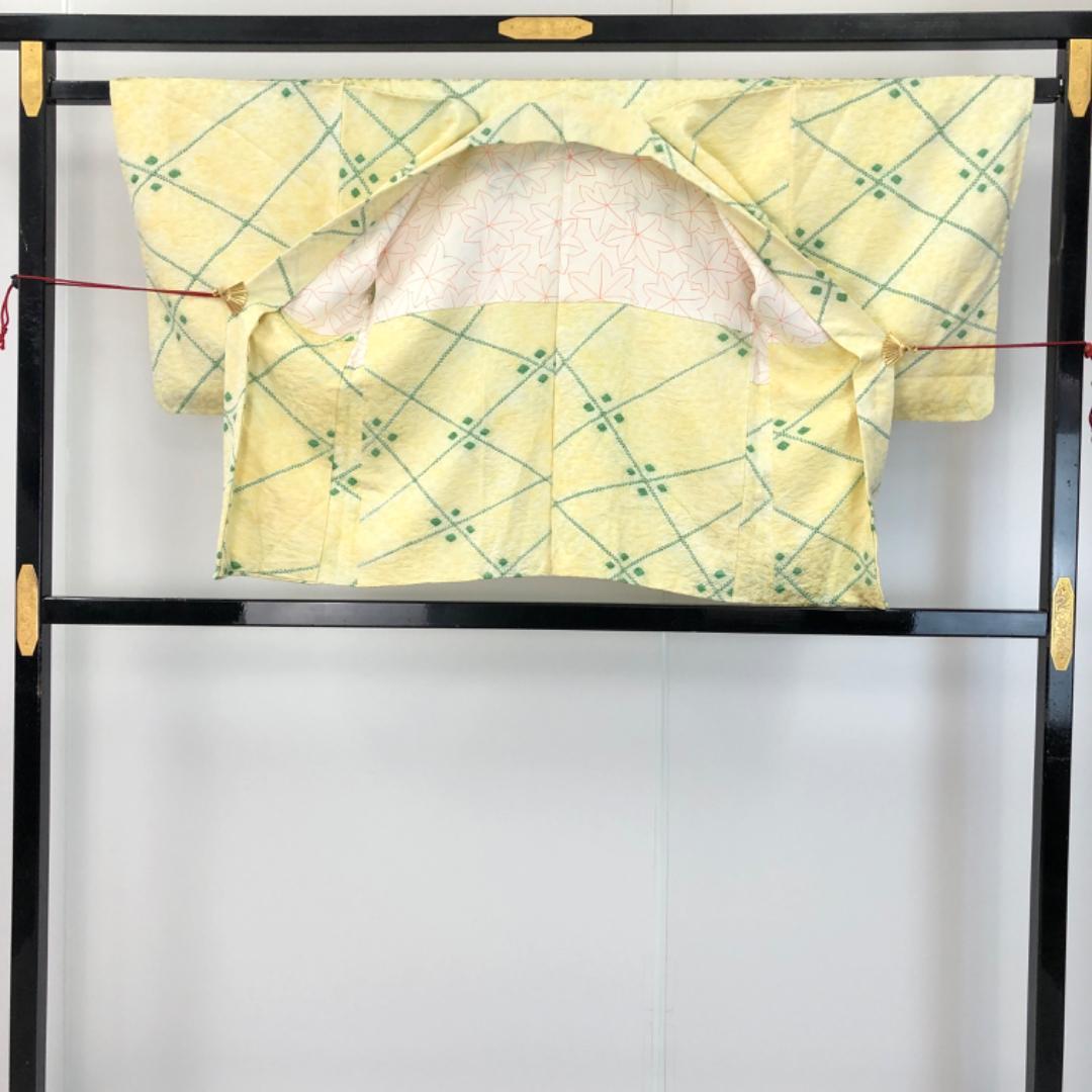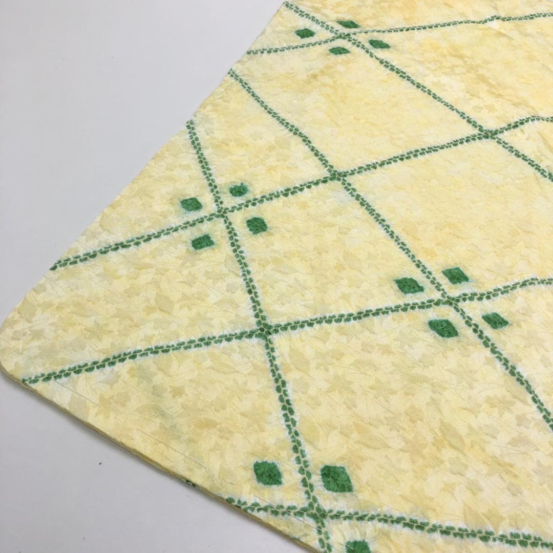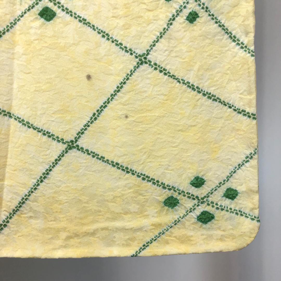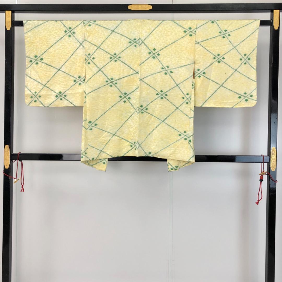 羽織 絞り 葉模様 花柄地模様 黄色 しつけ糸 H-4102 着物 きもの kimono 和服 和装 中古 リサイクル着物 【送料無料】