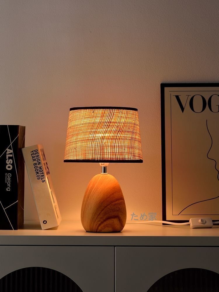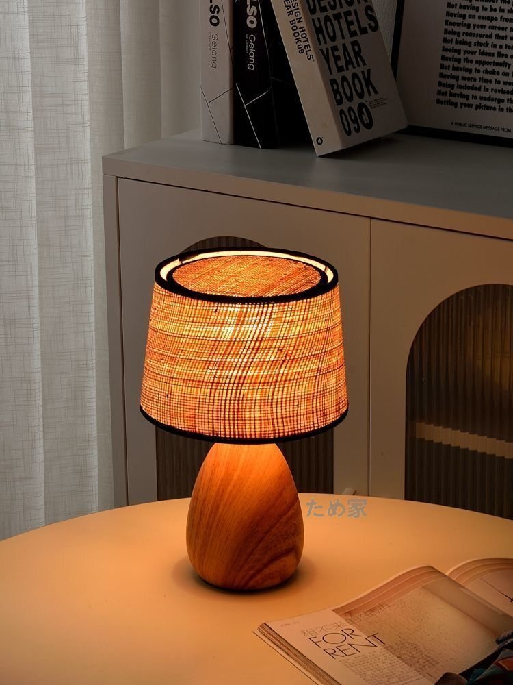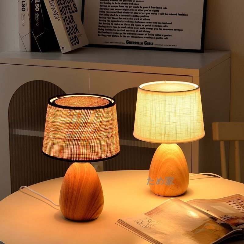 01 北欧陶器のスタンド LEDライト3色可変 レトロであたたかい ベッドサイドのランプ アンティークの木目 卓上スタンド