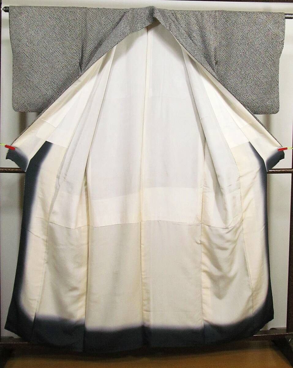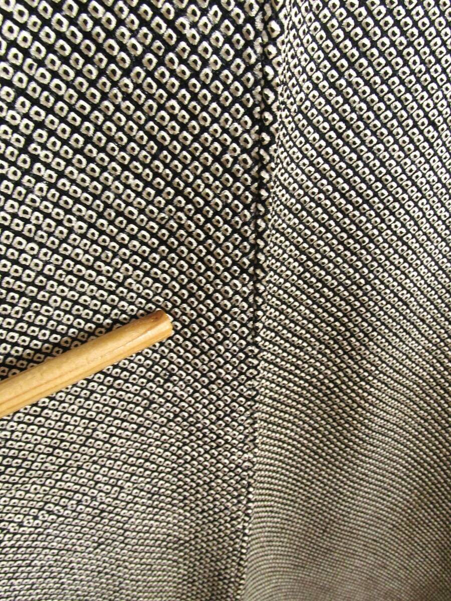 ね21 正絹 総絞り 小紋着物 総絞り 白黒 身丈159cm
