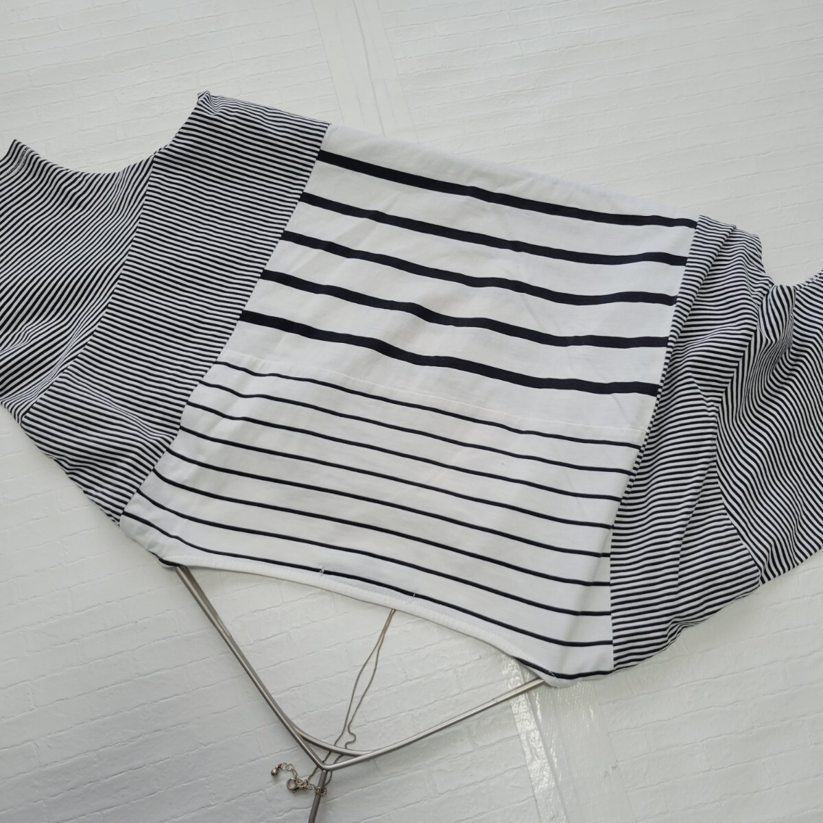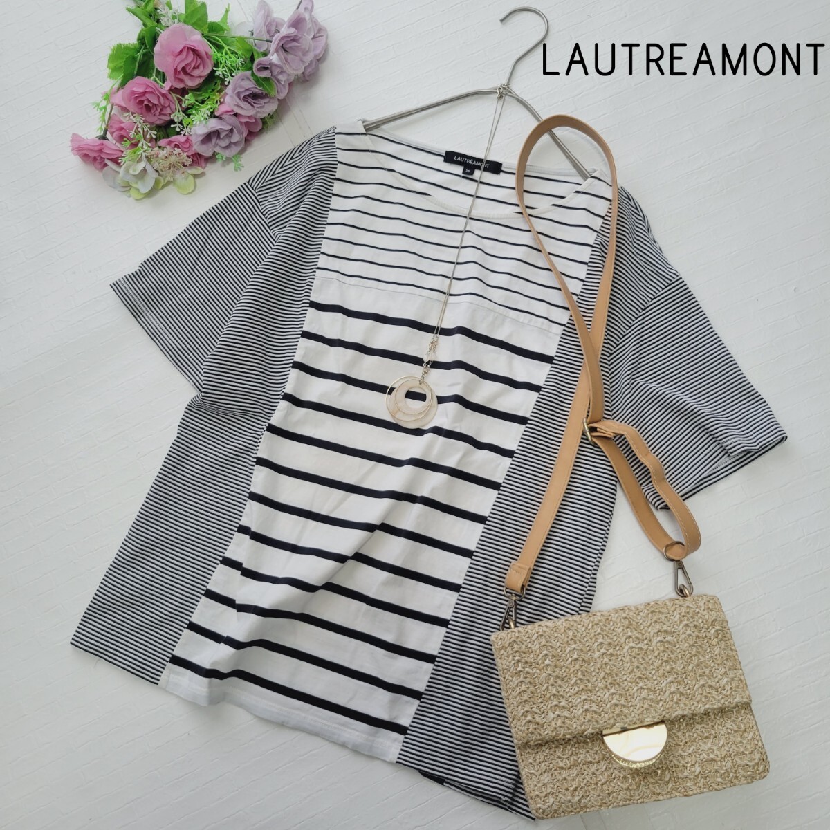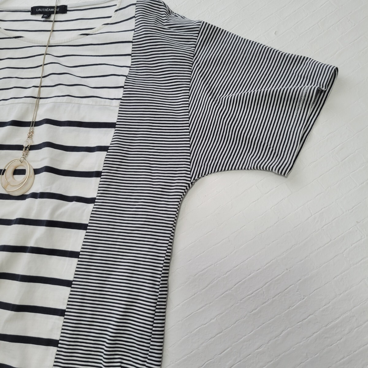 ボーダーとストライプが切り替えになってるかわいいカットソー。