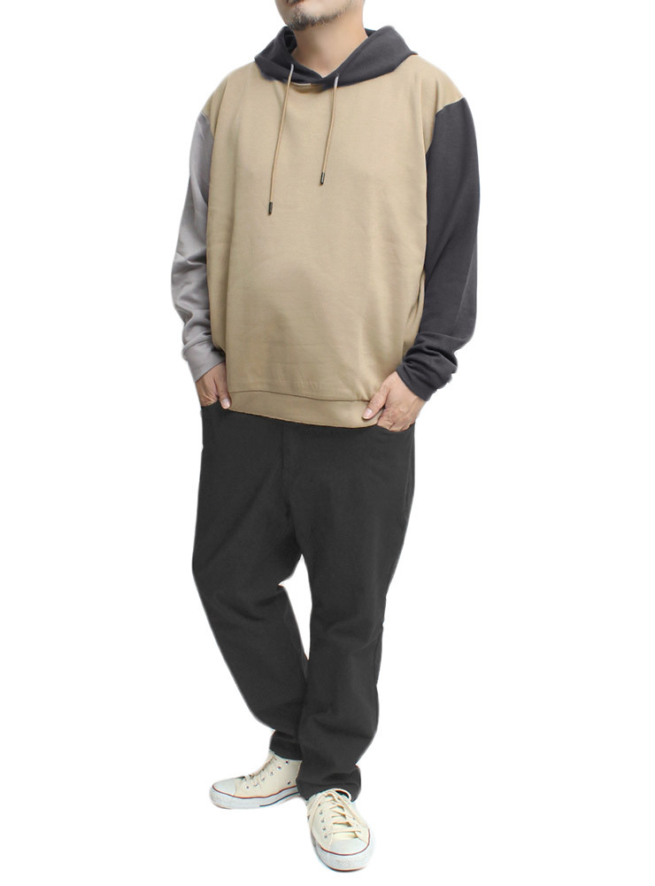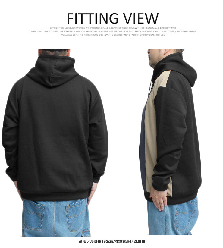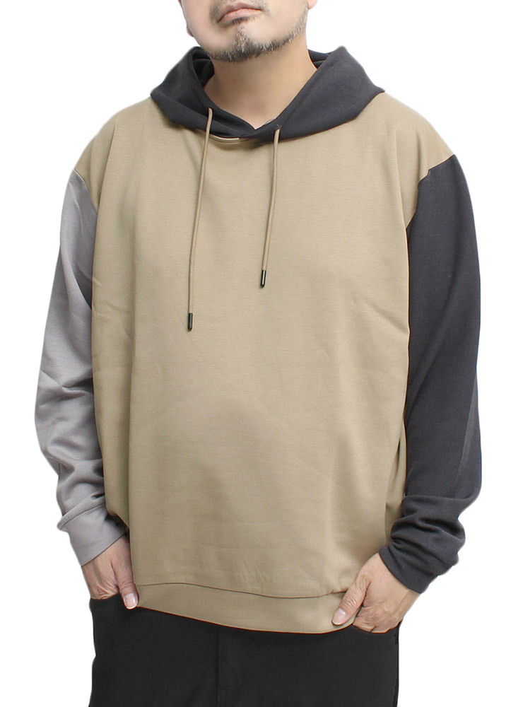 | 商品名 | 【新品】 4L ベージュ パーカー メンズ 大きいサイズ プルオーバー 切替 クレイジー デザイン ソフト ダンボール ストレッチ ドライ スウェット |