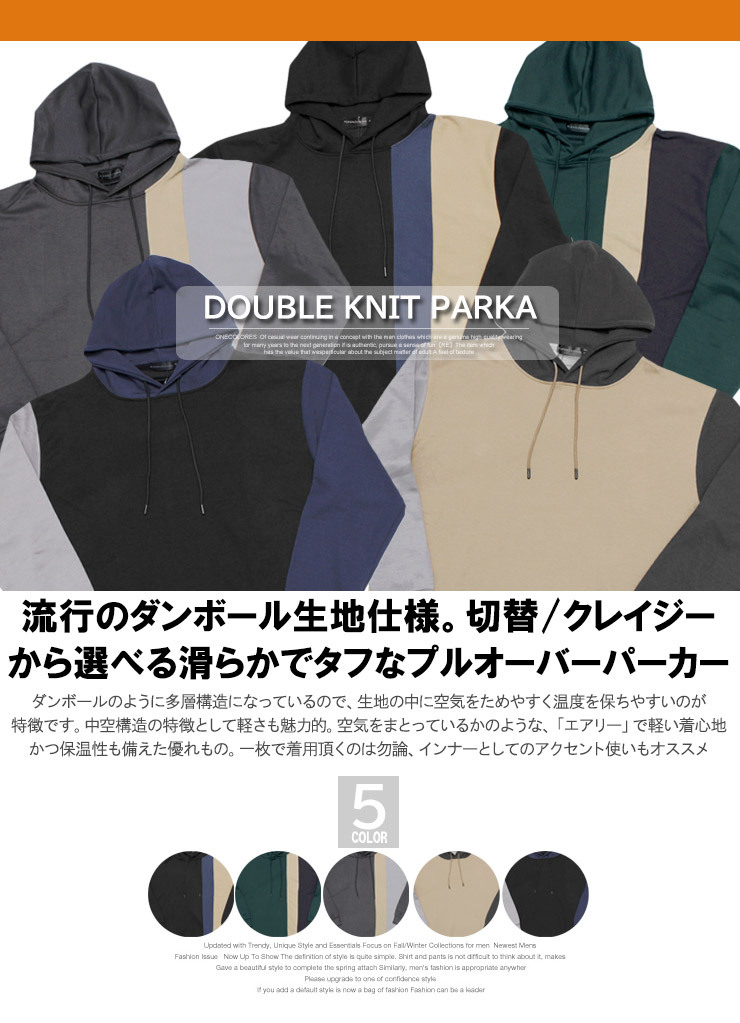 | 商品説明 | トレンドのダンボール生地を使用したタテ切替デザインとクレイジーデザインのプルオーバーパーカーの登場です。 |