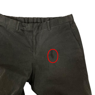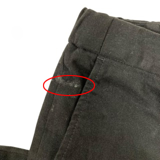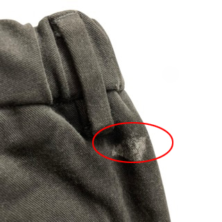 【状態】この商品には下記のようなダメージがあります。 ・右ポケット部分に汚れ ・左太もも部分に一部シミ 全体的に中古品としての使用感・着用感が見られるものの、普通にお使いいただける商品です。 ※全体的に中古品としての使用感と上記のようなダメージがありますが、通常使用には支障のない商品です。掲載写真や記載内容をご確認いただき、ご理解の上ご購入ください。