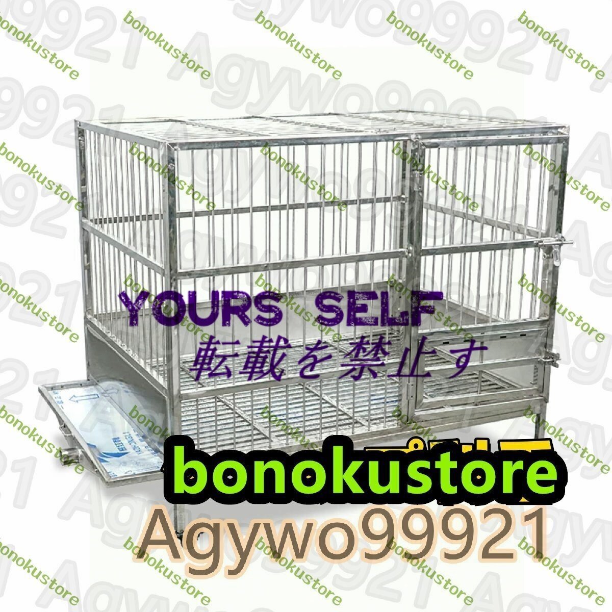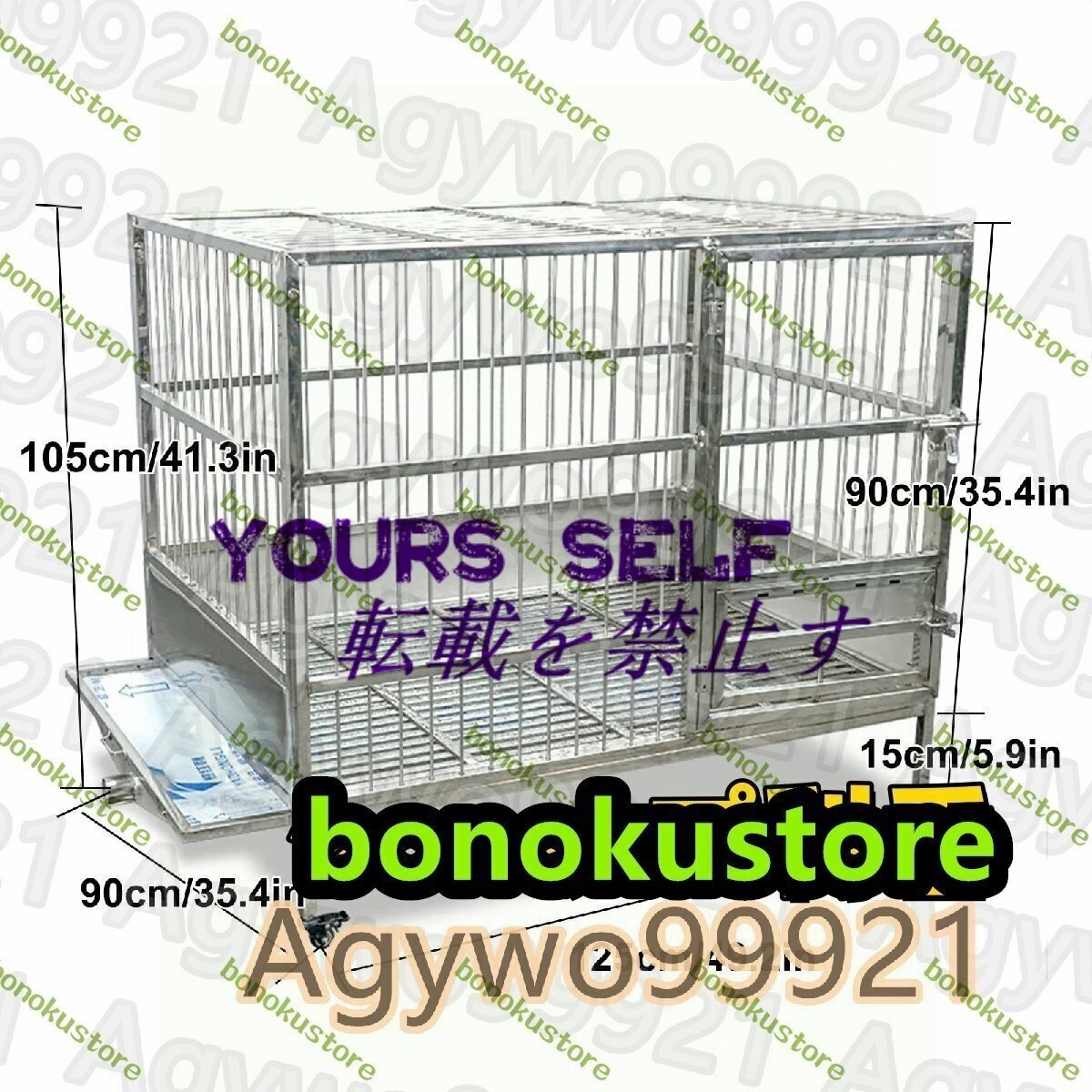 犬用ケージ ペットケージ ステンレス製のドッグケージ ダブルドア付き スイベルホイール付き 室内犬 ゲージ 犬小屋・ケージ 犬のトイレ付き(125X90X105cm)