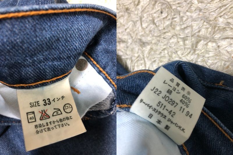 ◆LEVIS 511 リーバイス レーヨン混 春夏 デニムパンツ ジーンズ W33 90s 日本製