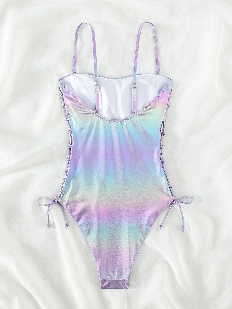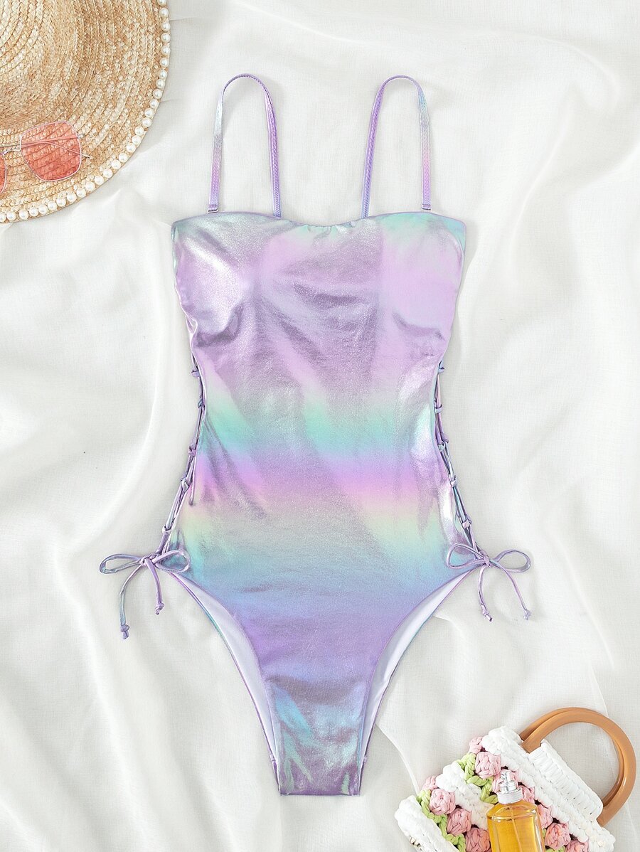 レディース 水着 ワンピース オンブル サイドリボンドローストリング ワンピース水着