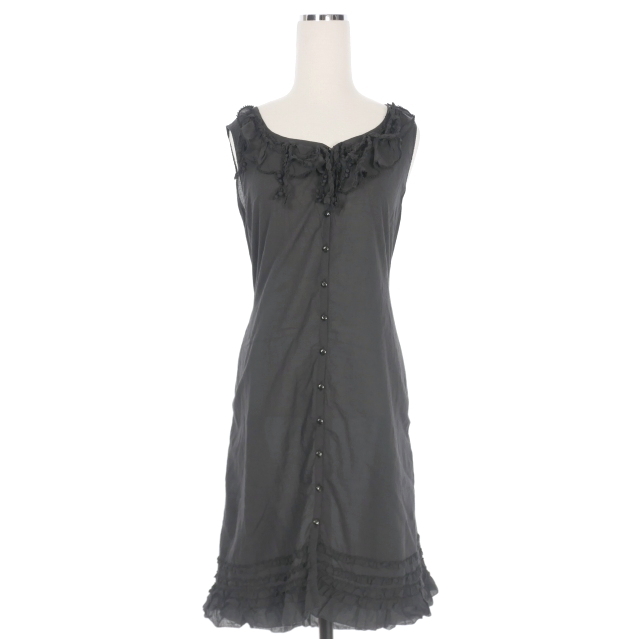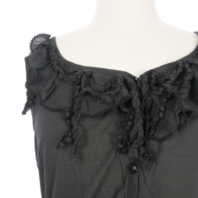 ピンクハウス PINK HOUSE ピコ加工 レース シャツワンピース チュニック ノースリーブ ブラック 黒 P0101FB05 レディース