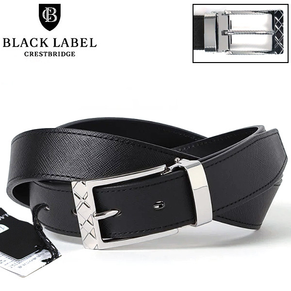 送料無料!新品 ブラックレーベル クレストブリッジ シャドーチェック バックル エンボス レザーベルト牛革 調整可BLACK LABEL CRESTBRIDGE