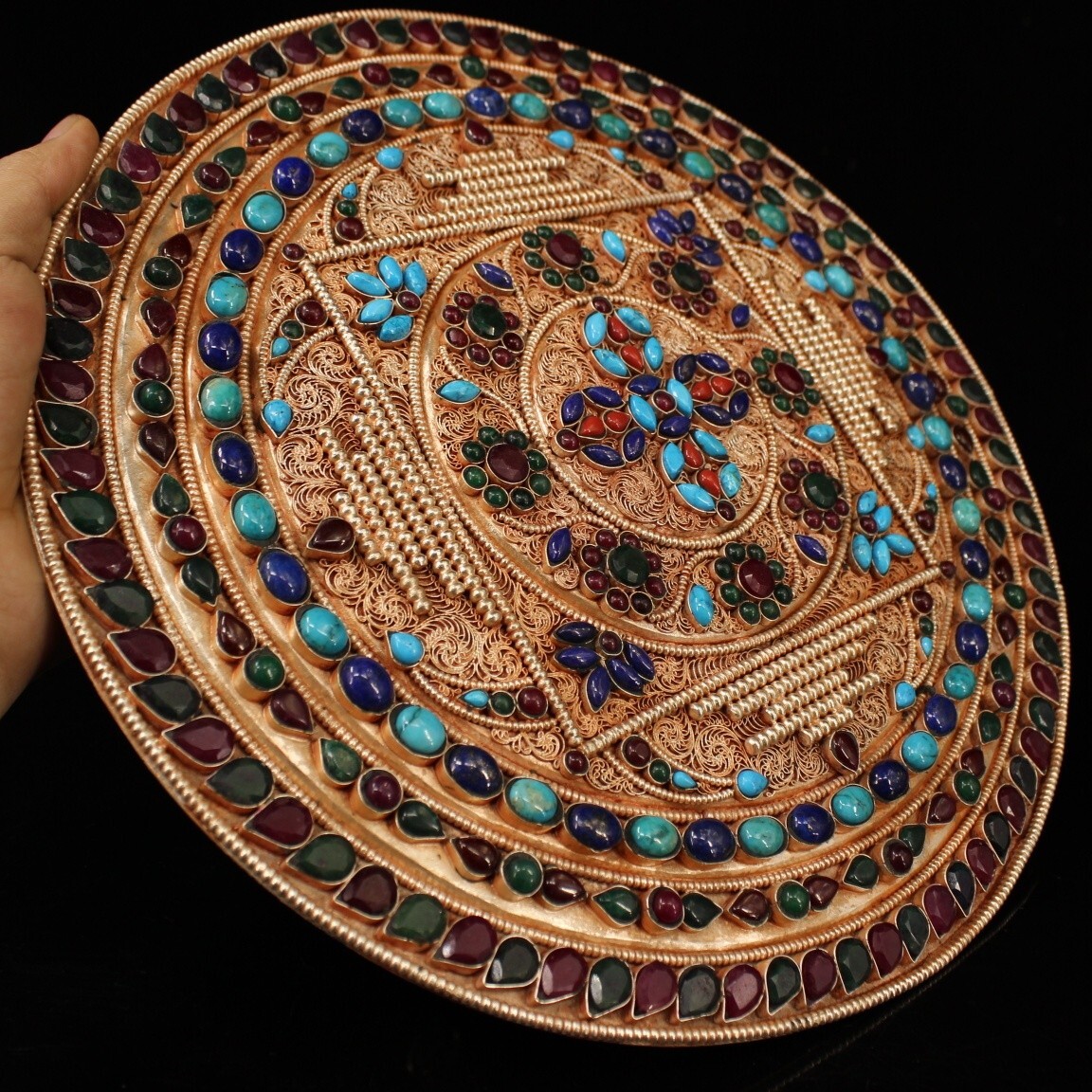 永し 明時代 藏傳 藏銀嵌寶石 十字多杰壇城 宗教 仏教古美術 極細工 古銅彫 置物擺件 古美術品 時代物 古董品 収集 旧家蔵出 中国唐物 A622