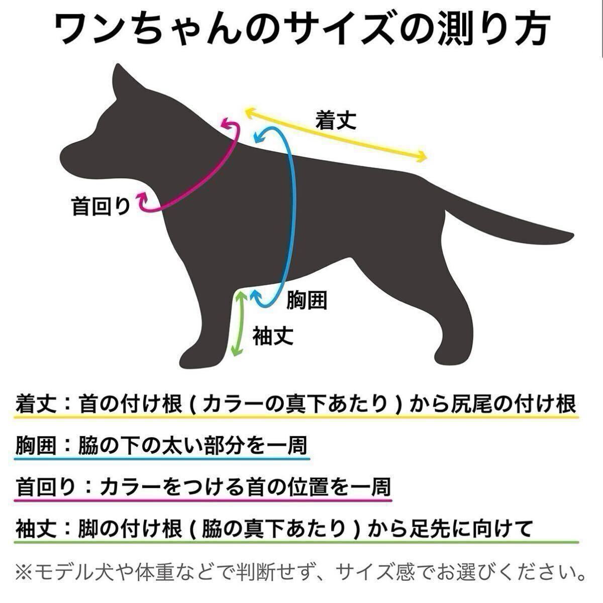 お洋服の着丈がワンちゃんの着丈より長すぎる、またはぴったり過ぎると歩行中尻尾にかかってしまったり排泄物がお洋服にかかってしまう場合がございますのでご注意ください。