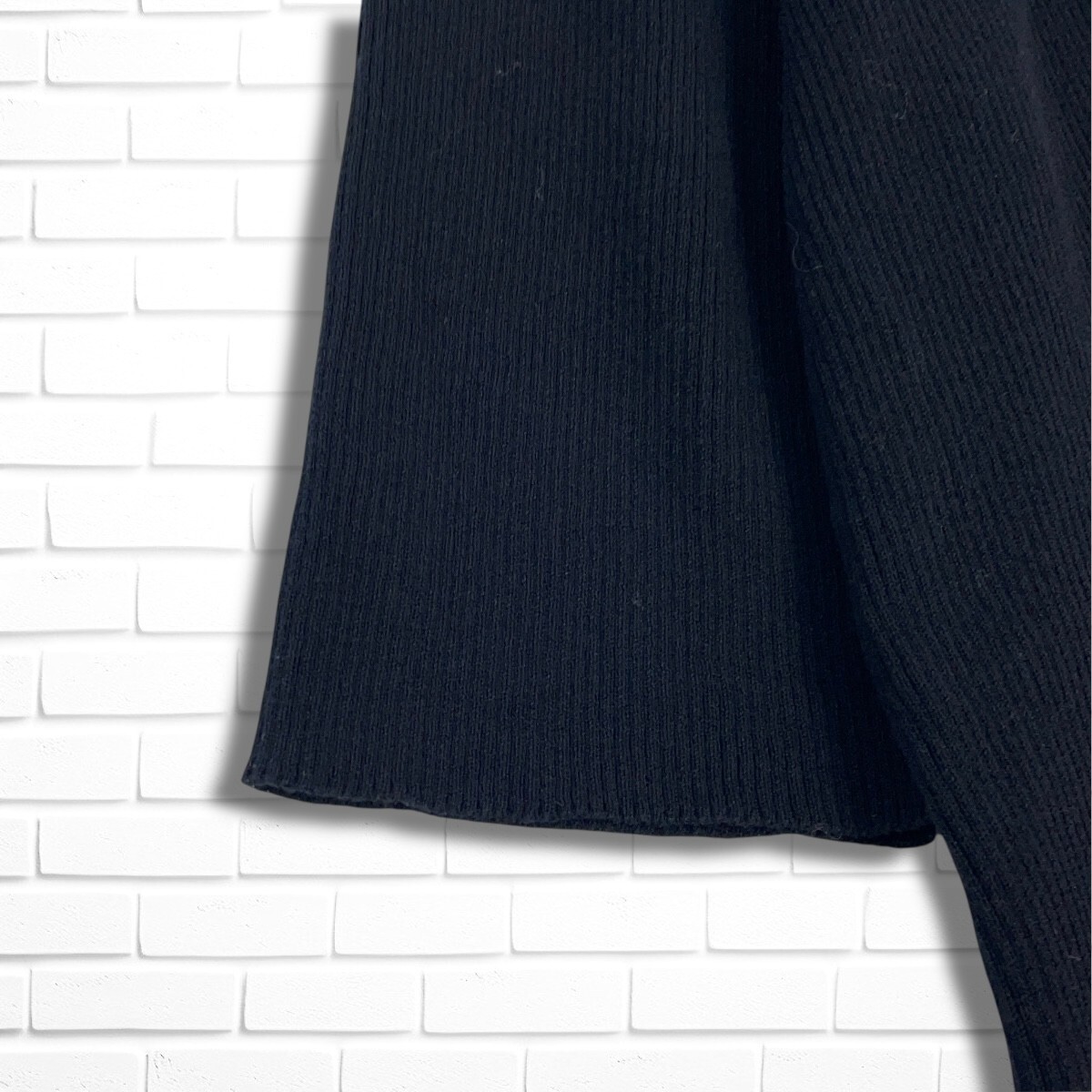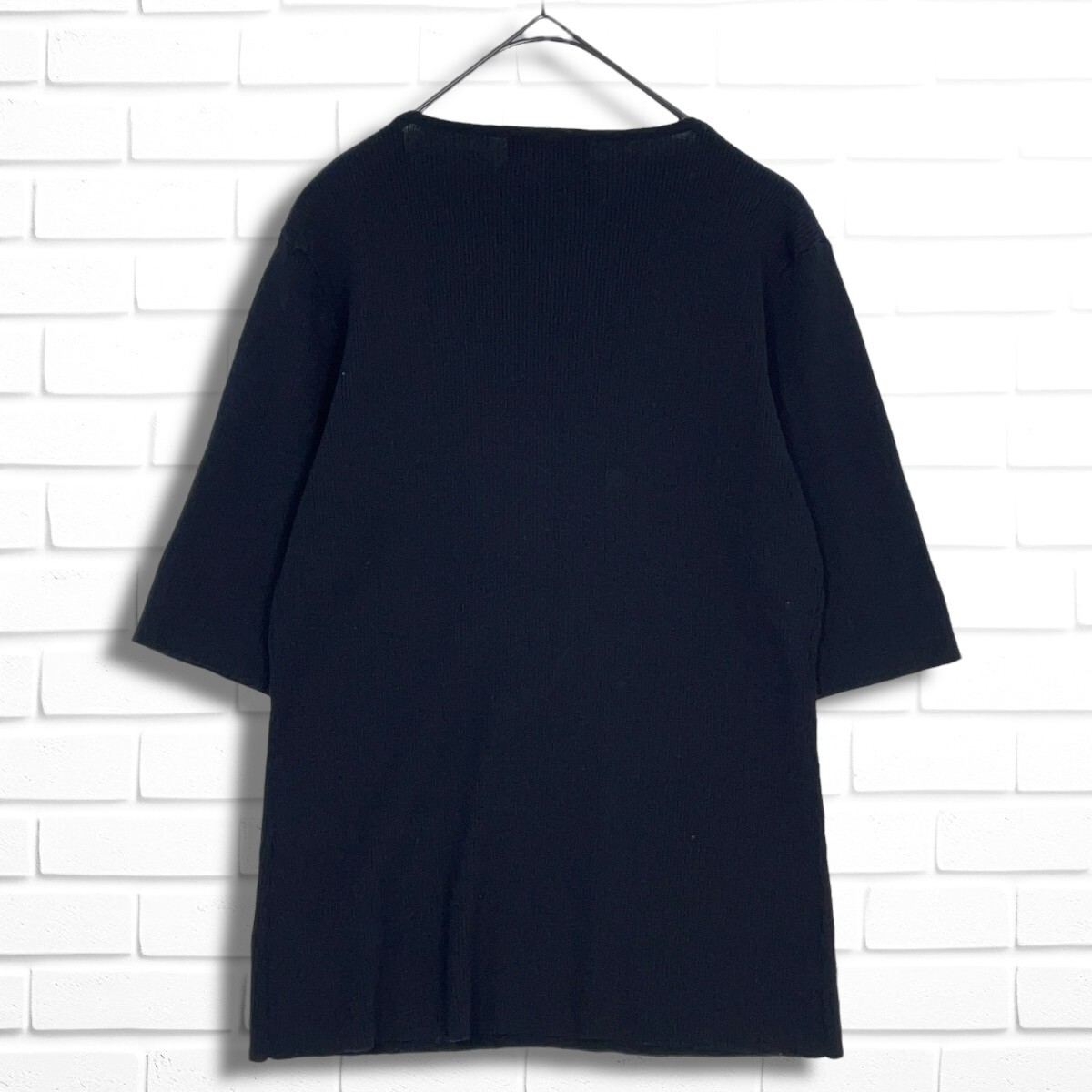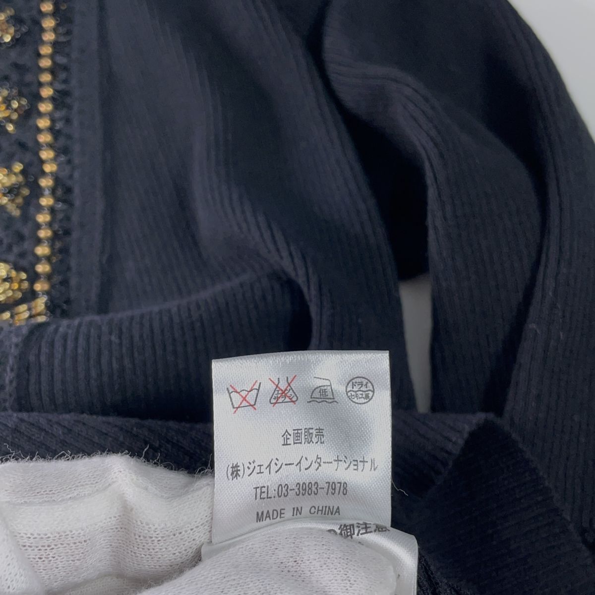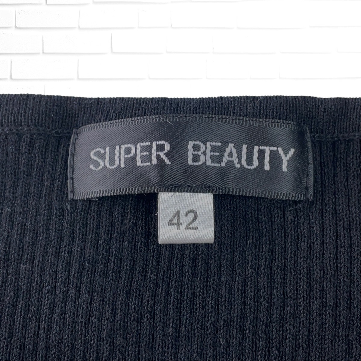 ◆美品◆ SUPER BEAUTY スーパービューティー ビーズ スパンコール レースアップ デザイン コットン リブ ニット カットソー 黒 ブラック レディース 42 ◆送料無料◆ 1965F◎