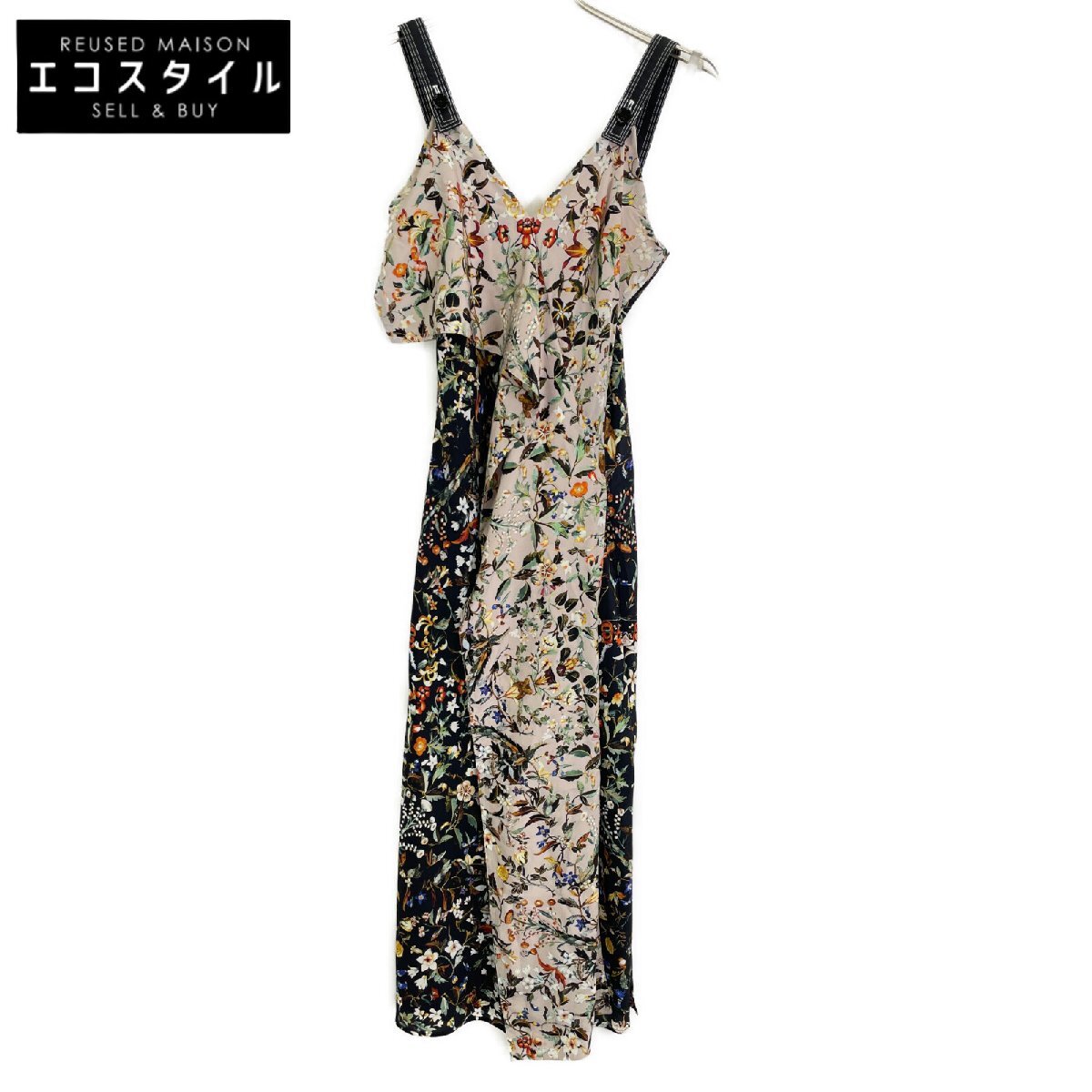 BURBERRY バーバリー フラワーキャミソールシルクワンピース ブラック×ベージュ UK4 ワンピース シルク レディース 中古