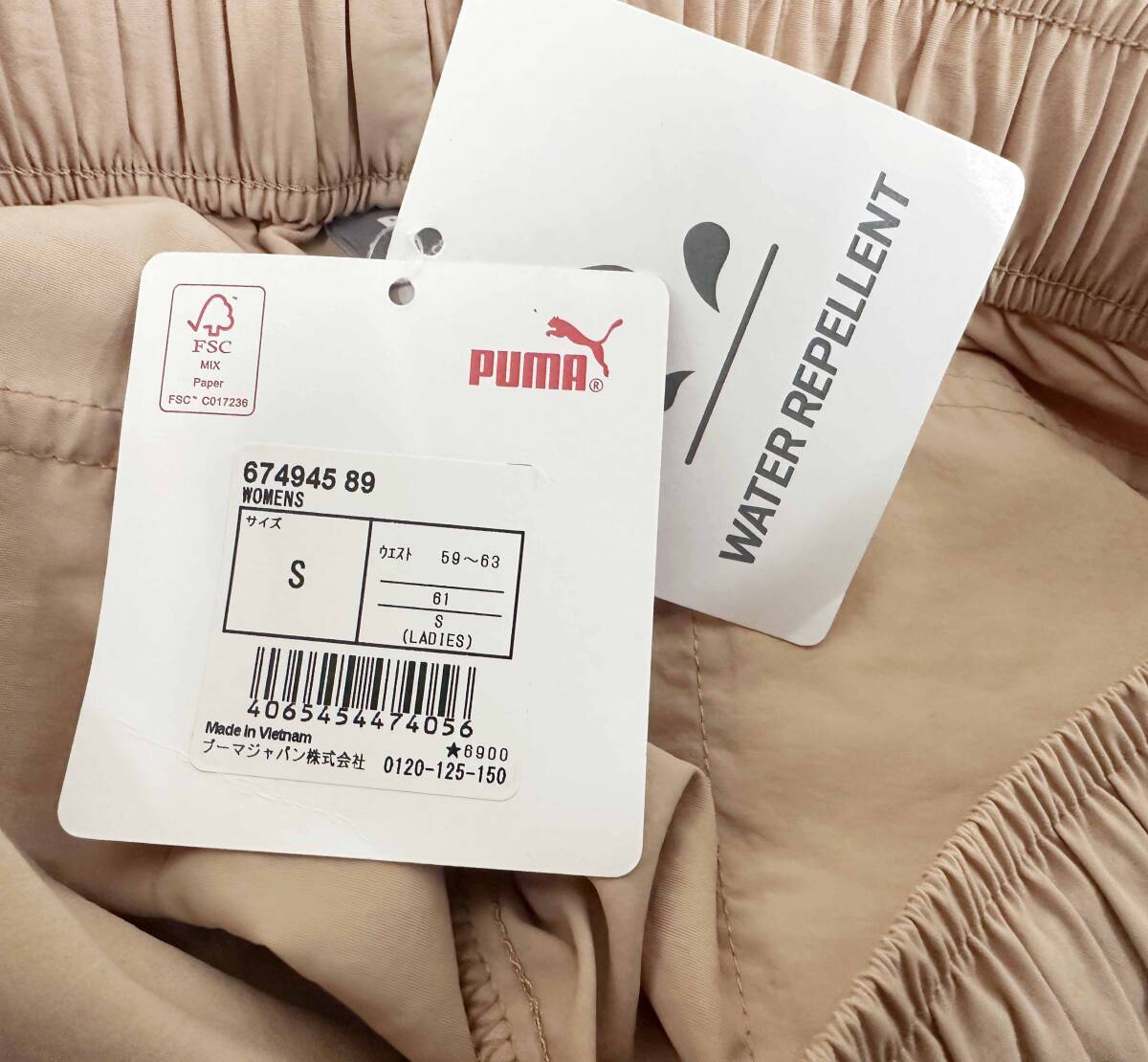 新品 S ★ puma プーマ レディース ウーブン ワイド クロップド パンツ 674945 89 ベージュ 撥水 紫外線防止 ウエスト総ゴム ロングパンツ