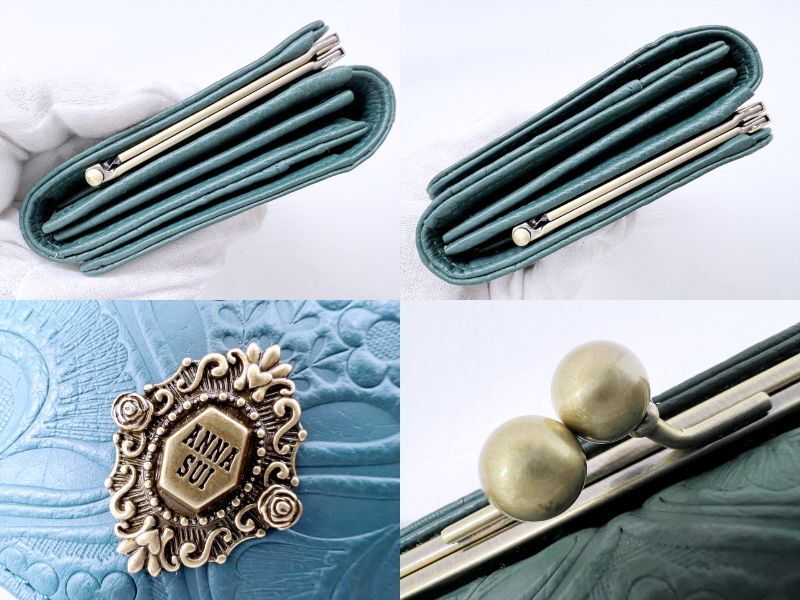 ほぼ未使用 美品 アナスイ ノヴァ がま口 二つ折り長財布 グリーン