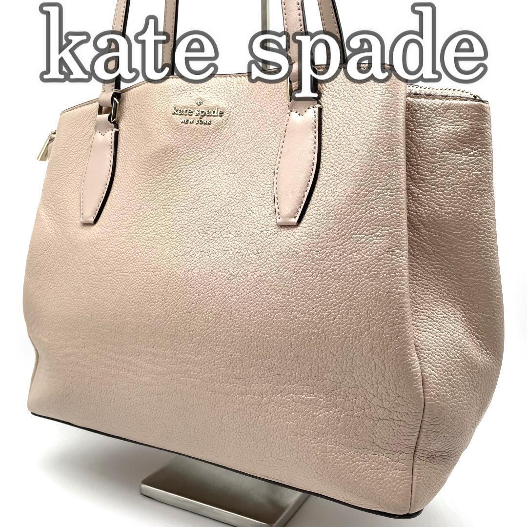 kate spade newyork ケイトスペード トートバッグ 3層 大容量 A4収納 ピンク グレー モネ ラージ 肩掛け シボ革