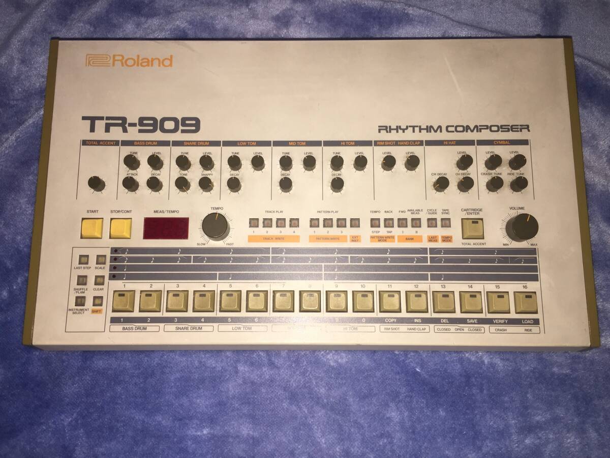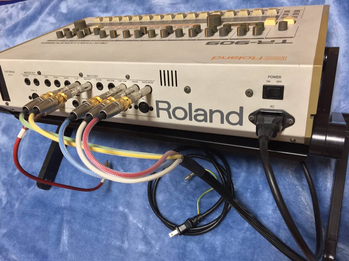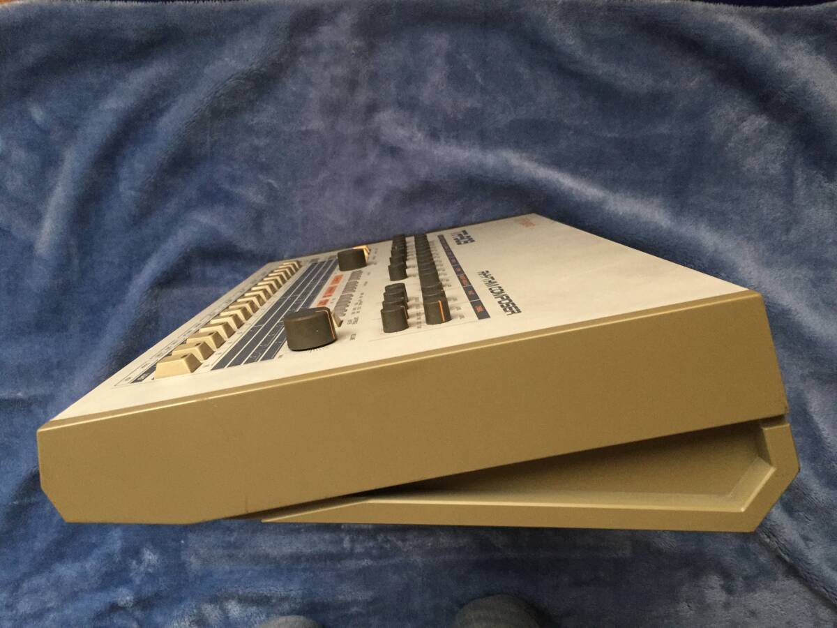 {TR-909 Service Manual}にはBattery cover (2202062700) Battery cover (2202024300)  Serial No. 370600-up (Compatible) との記述があり、電池カバーは金属製ですが,その後のマイナーチェンジSerial No. 381500以後の{BASS DRUM VOICING BOARD Capacitor C9の0.22μF から0.33μF への変更}より前に製造されていますので、前期型と判断いたしました。
