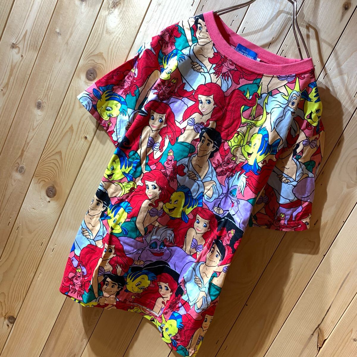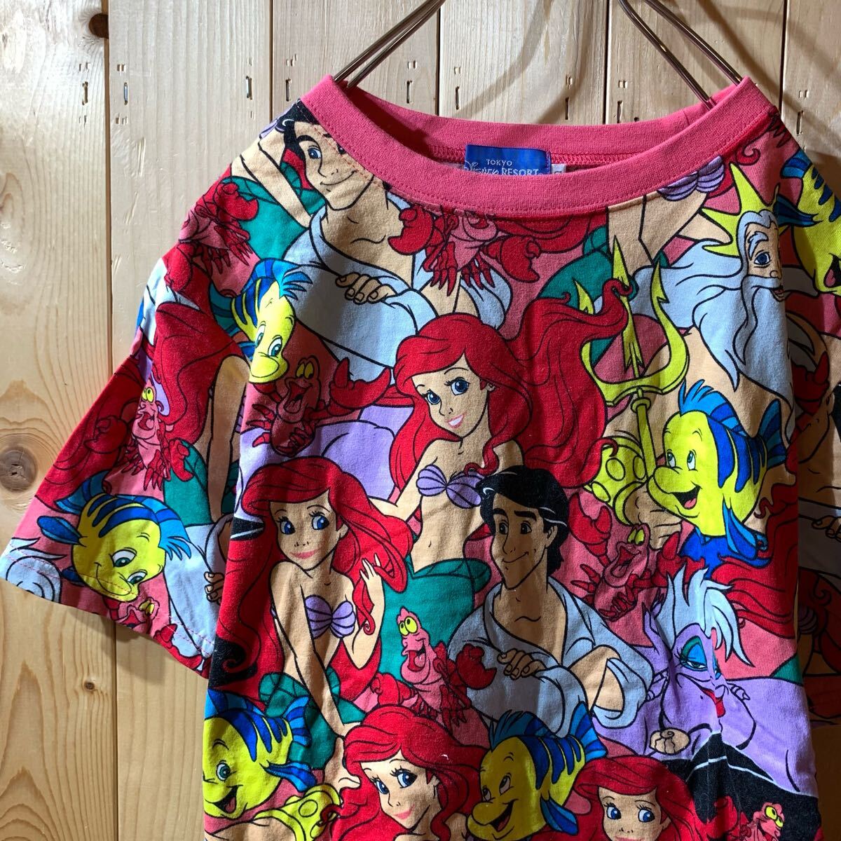 [YUK412]Disney Resort 半袖Tシャツ Tシャツ 総柄 アリエル リトルマーメイド S