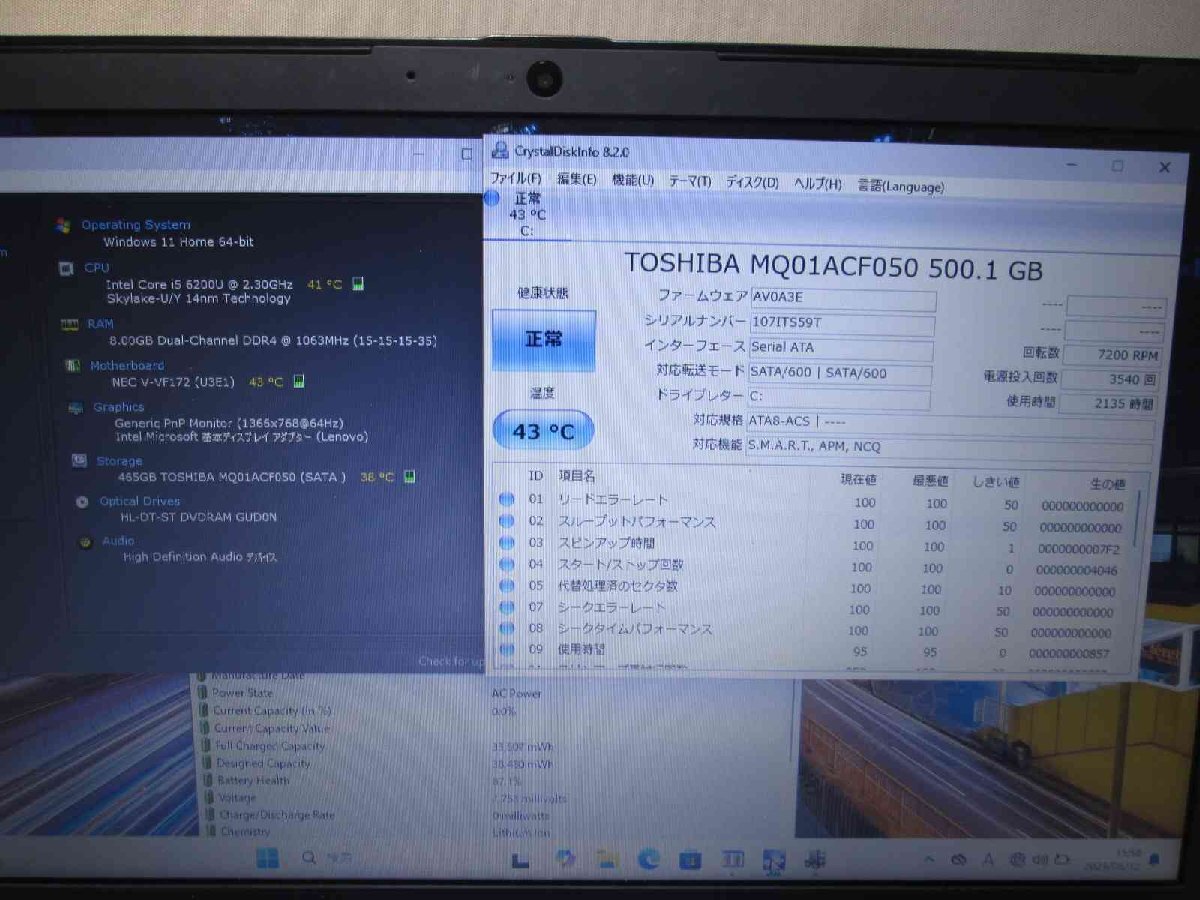 | OSインストール | Windows11 Homeインストール済み OSが起動するようにセットアップ済みです |