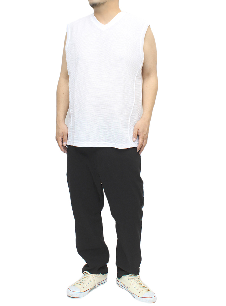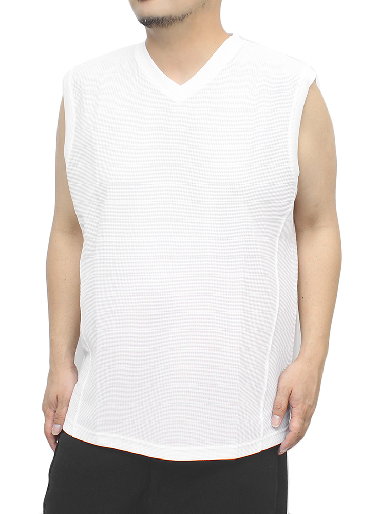 | 商品名 | 【新品】 5L ホワイト DISCUS(ディスカス) ノースリーブ Tシャツ メンズ 大きいサイズ Vネック ドライ ワッフル 吸汗速乾 消臭 抗菌 タンクトップ |