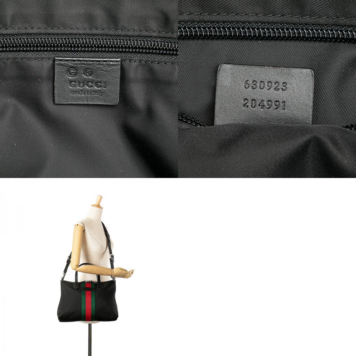 グッチ シェリーライン ハンドバッグ ショルダーバッグ 2WAY 630923 ブラック キャンバス レザー レディース GUCCI 【中古】