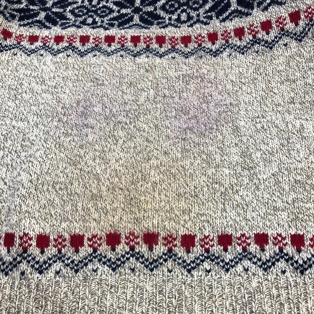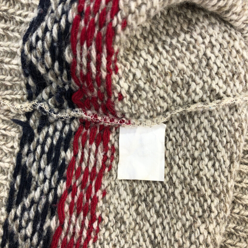 | [商品管理番号] U4710 [ブランド] L.L.Bean/エルエルビーン [サイズ] L [実寸サイズ] 肩幅:約45cm 着丈:約70cm 身幅:約56cm 袖丈:約67cm [主な素材] 表地 : ウール [色] アイボリー [仕様] アウトドア ノルディック柄 [状態] 汚れ:首元、腹部 破れ:肩、首元、脇 特記事項:変色、タグ欠損、糸ほつれ | |||
