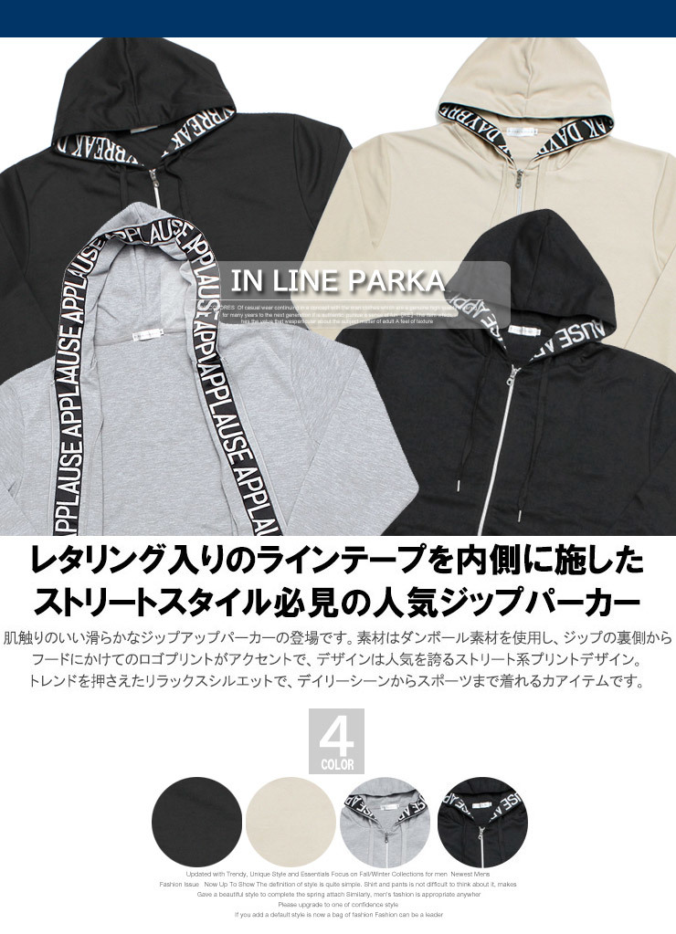 商品名 | 【新品】 6L ベージュ パーカー メンズ 大きいサイズ 長袖 ダンボール ジャガード ロゴ テープ フード裏 プリント ジップアップ スウェット |