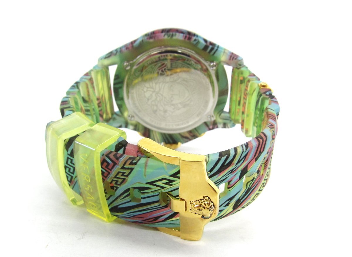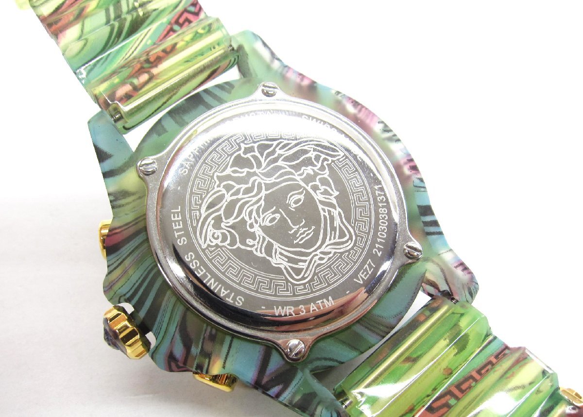 【詳細】 Versace ベルサーチェ アイコン アクティブ クロノグラフ ユニセックス VEZ701322 腕時計 ケースサイズ: 約45mm × 約45mm × 約15mm 【状態】 こちらは中古品になります ベゼルに擦れあり ダメージはありますが、まだまだご活用いただけます 店舗にて販売を行っている為、保管キズが付く場合がございます。 | |||||||