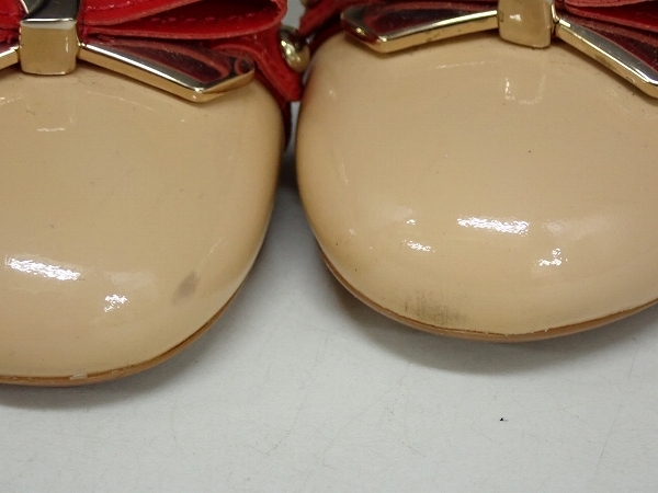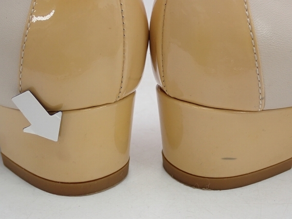 こちらの商品は中古品です。使用感は少ないです。つま先やかかと、ヒールなどに変色汚れが見られます。かかとソールの減りはみられません。 箱はありません。 ※アウトソールにポリウレタン素材が使われている靴は、使用の有無や頻度に関わらずソール内部で経年劣化が進行している可能性があります。その場合、着用時にソール全体が破損する恐れがあります。 また、アウトソール接着部分の剥がれ、インソールや内部側面素材の剥がれ、ストラップのゴムの劣化、ピンヒール素材の破損などの経年劣化も考えられます。 外観では判断のできない劣化ですので予めご理解の上ご入札下さい。 商品到着後1週間以内に数回の試し履きをお願い致します。試し履き後、商品に問題がある場合は対応させて頂きますので取引メッセージよりご連絡下さい。 | |