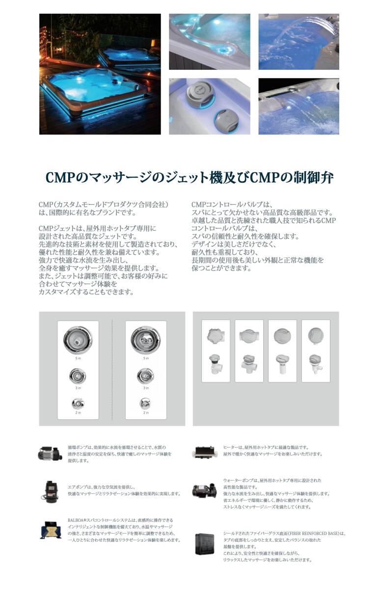 当社のスパ・プールはアメリカ、ヨーロッパでも販売されている人気商品で、高品質のため全てのEU加盟国、