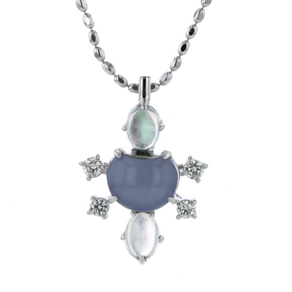 | 商品紹介 | ホワイトゴールド製のネックレスです。 神秘的な魅力を放つハックマナイト、柔らかな光を宿すムーンストーン、そして煌めくダイヤモンドが美しく組み合わされた、華やかで個性的なデザインが魅力です。 宝石たちが中央から放射状に広がるような、洗練されたデザインが胸元を彩ります。 ホワイトゴールドのクールな輝きと、カラーストーンの独特の美しさ、ダイヤモンドのきらめきが融合し、唯一無二の存在感を放ちます。 普段使いから特別な日まで、幅広いシーンでお楽しみいただける、奥深い魅力を秘めた逸品です。 |