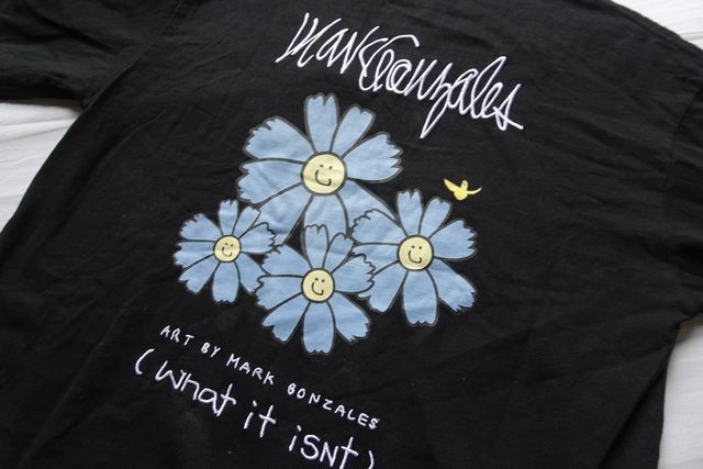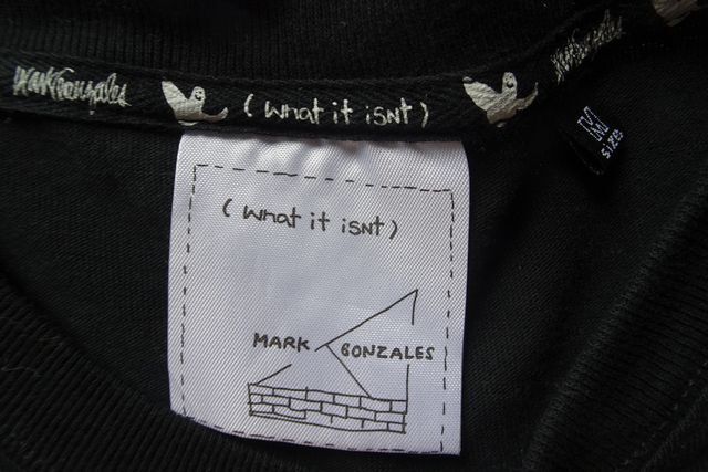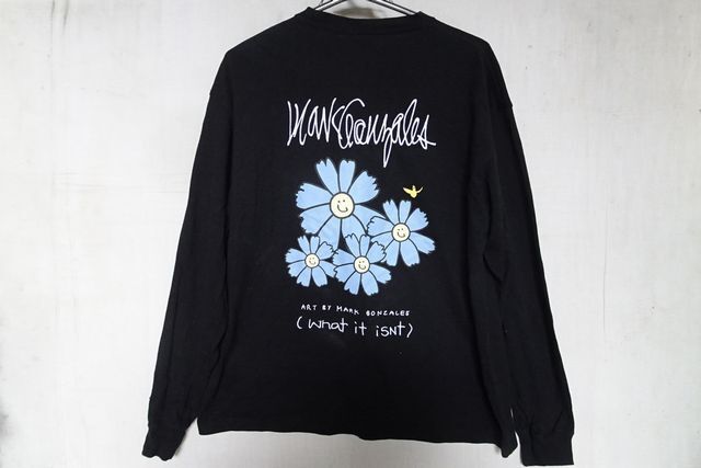 (What is isnt)/長袖Tシャツ/ロンT/カットソー/ART BY MARK GONZALES/ししゅう/プリント/袖口リブ/黒/ブラック/Mサイズ(6/10R7)