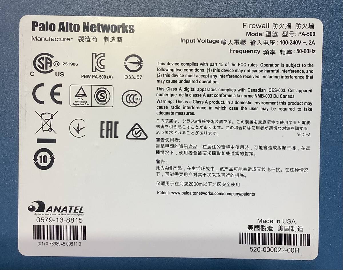S70610314 Palo Alto Networks PA-500 1点【通電OK、複数出品】071111