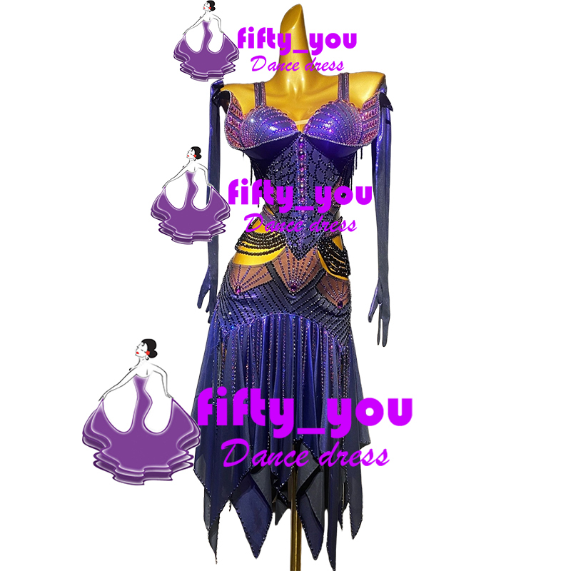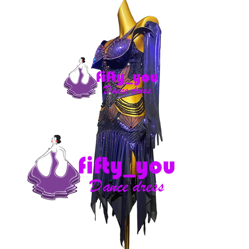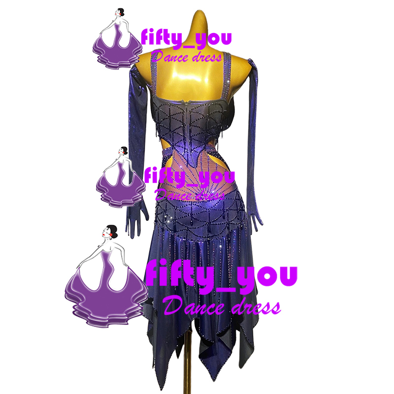 新品fifty_you レディース社交ダンス衣装 ラテンドレス 競技試合デモ着用ダンスドレス 上品溢れる1着 ゴージャスストーン飾り