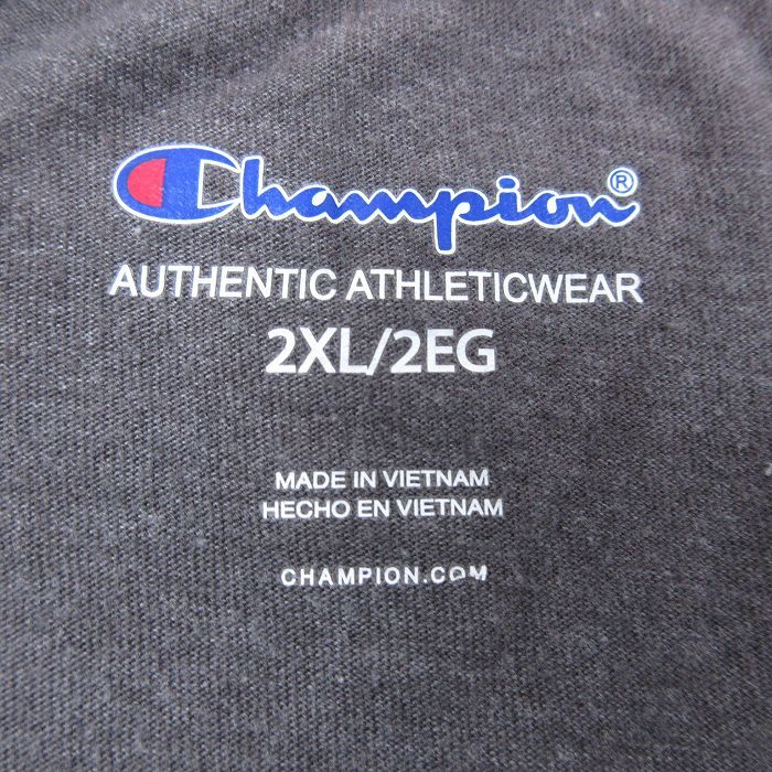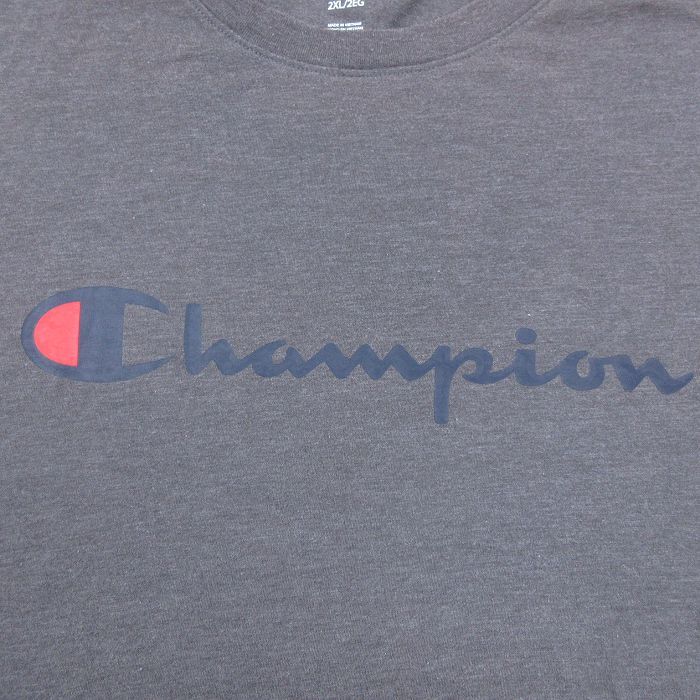 【商品名】 XL★古着 チャンピオン champion 半袖 ブランド Tシャツ メンズ ビッグロゴ 大きいサイズ クルーネック 濃グレー 霜降り