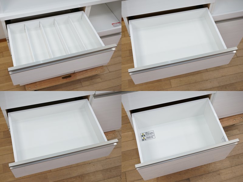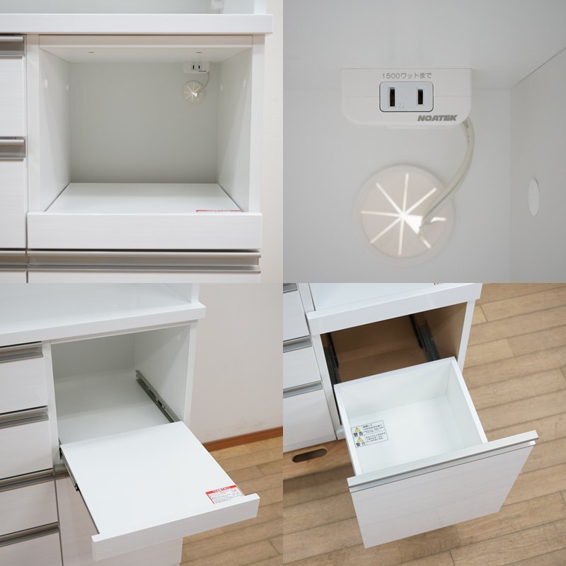 ■東ハ:未使用【ニトリ】LIGARE リガーレ キッチンボード ホワイト 幅約100.5㎝ 高さ約190.5㎝ 食器棚 ダイニングボード 家電ボード ■ デザインも機能性も豊かな家具を取りそろえる、ニトリの 「 LIGARE リガーレ キッチンボード 」明るく清潔感のあるホワイトカラーになります。 ◆上部収納 ・アルミレールで開閉もスムーズなスライド扉タイプ ・可動棚板:4枚 ◆上台オープンスペース ・天井部:蒸気や熱に強いモイス加工付き ・1500W 2口コンセント付き ・サイズ: (約) 高さ45.3 × 幅95.3 ×奥行40.0 cm ・地面~作業台までの高さ(約) 96.0 ㎝ ◆下台オープンスペース ・1口コンセント付き ・炊飯器やコーヒーメーカーなどの小物家電の配置に最適なスライドテーブル式 【サイズ】 (約)高さ190.5 × 幅100.5 × 奥行42.5 cm 設置したのみの未使用品になります♪ 付属品は写真にあるものが全てです。 商品画像をよくご確認の上、ご参加ください。 [管理No.25061083VIN] |