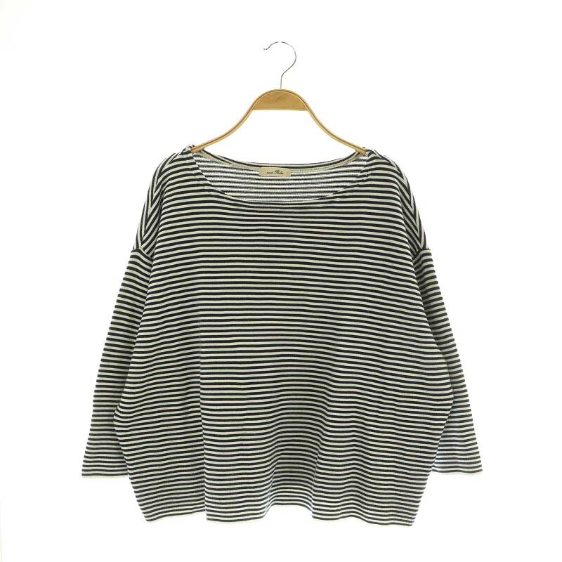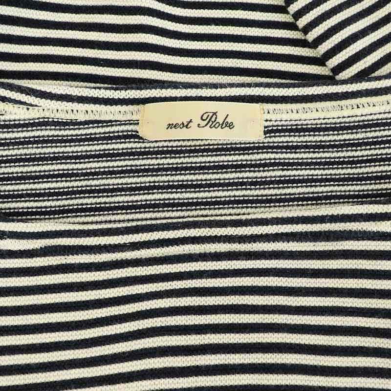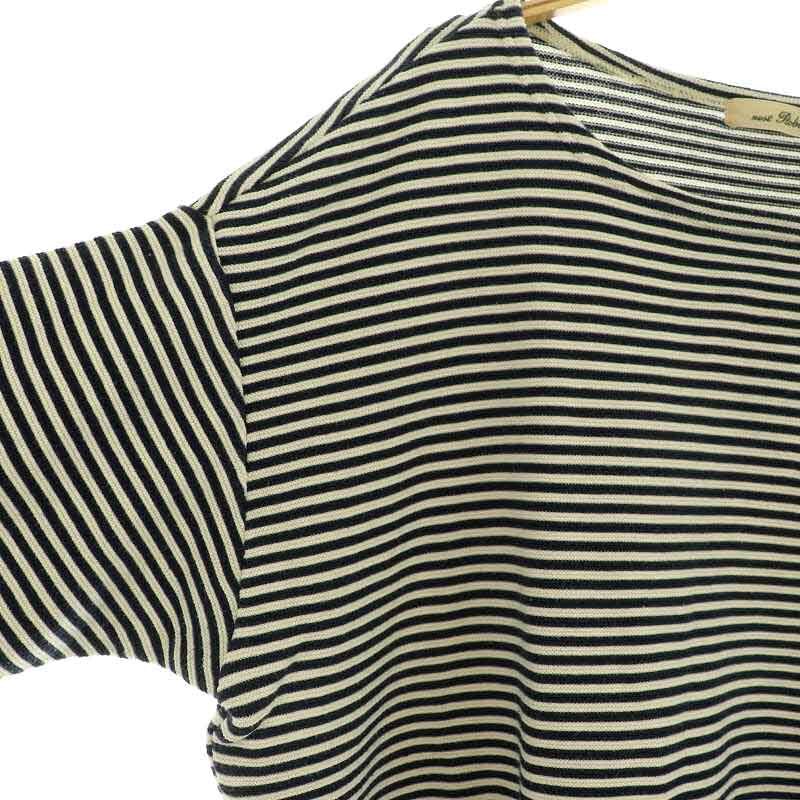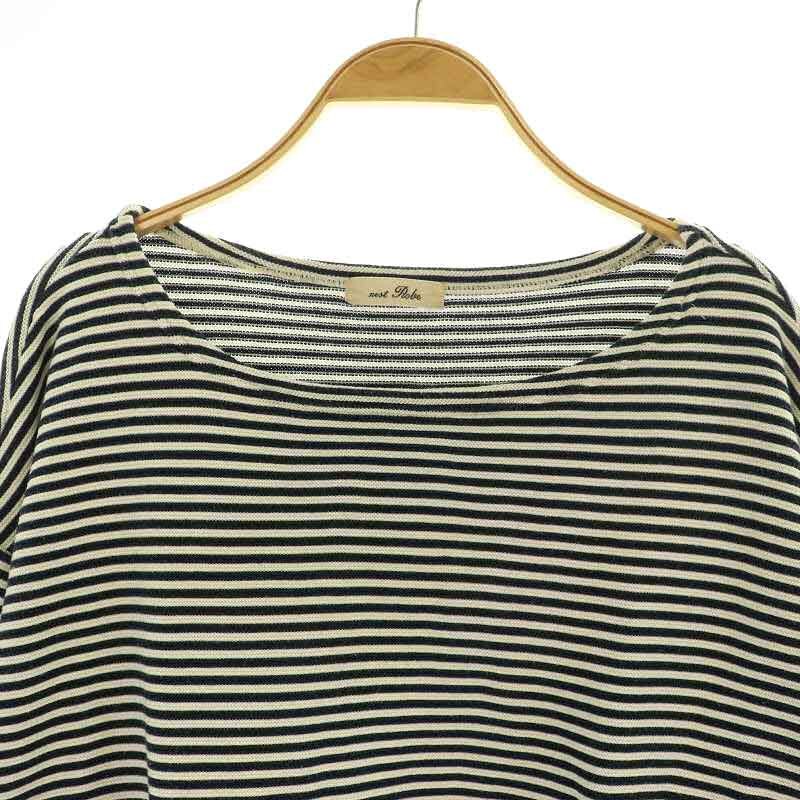 ネストローブ nest Robe ボーダーカットソー ニット 八分袖 ボートネック ワイド ブラック /MY ■OS レディース
