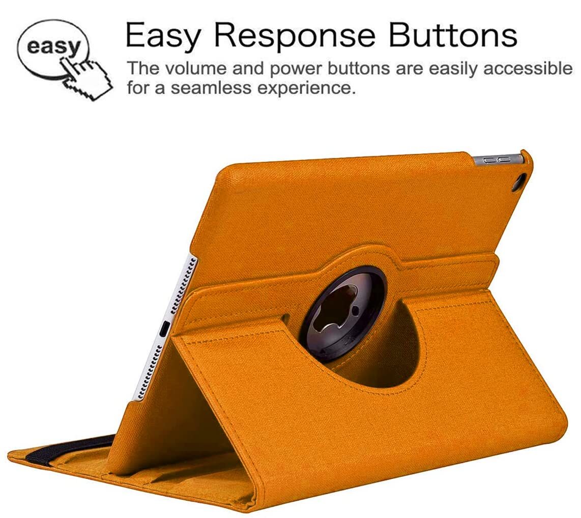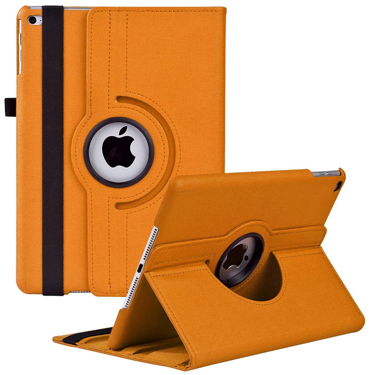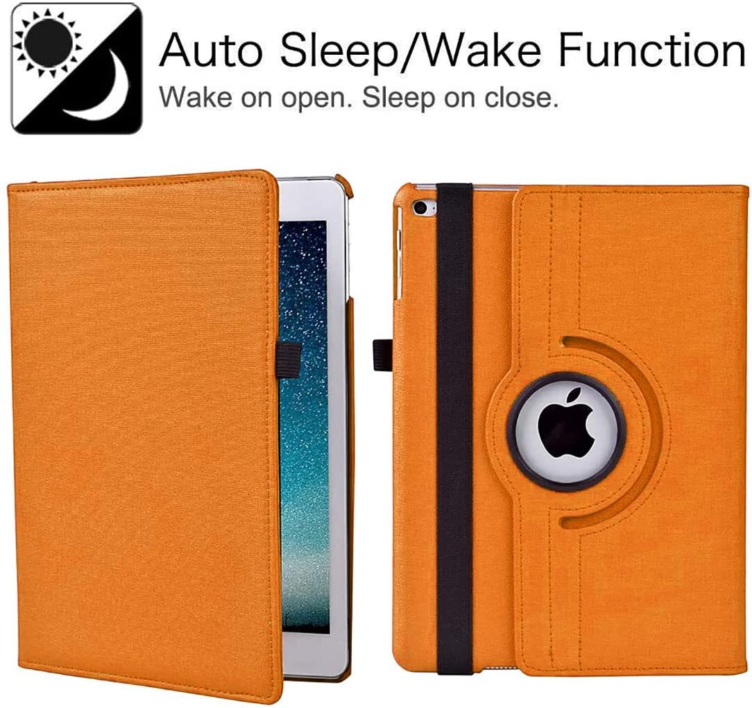 JXCX iPad 9.7 2018/2017ケース 新型(Newモデル)/iPad Air/iPad Air2カバー iPad 9.7インチ(第6、5世代)軽量 手帳型 360度回転スタンド オートスリープ機能 3段階調節可能 固定バンド 脱落防止耐衝撃 耐久性 おしゃれデニム生地 (オレンジ)