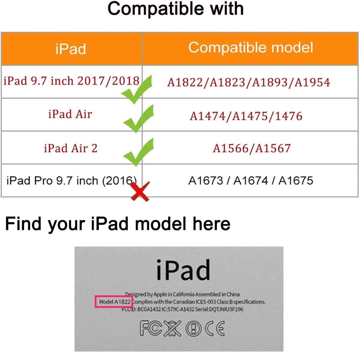【適用機種】 New iPad 2018 (モデル番号:A1954)/iPad 2017 (モデル番号: A1822、A1823)/ipad air(モデル番号:A1474、A1475、A1476))/ipad air2(モデル番号:A1566、A1567)。ご購入前に必ず裏面にモデル番号を確認してください。
